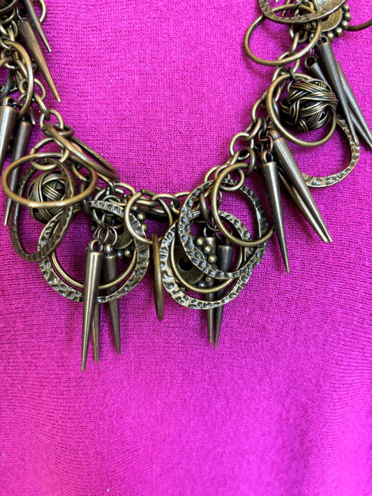 Spokes and Chains Necklace Antique Gold