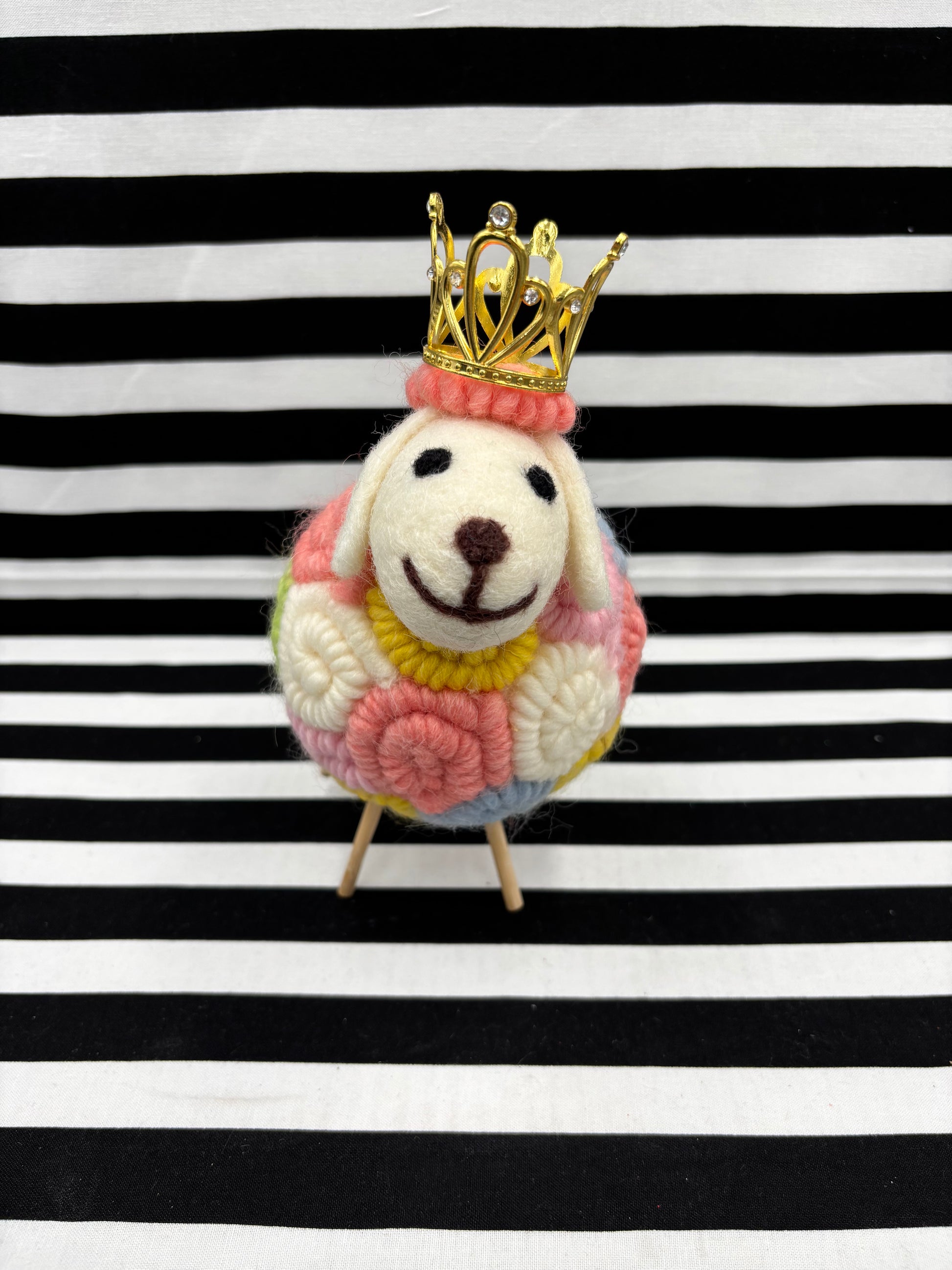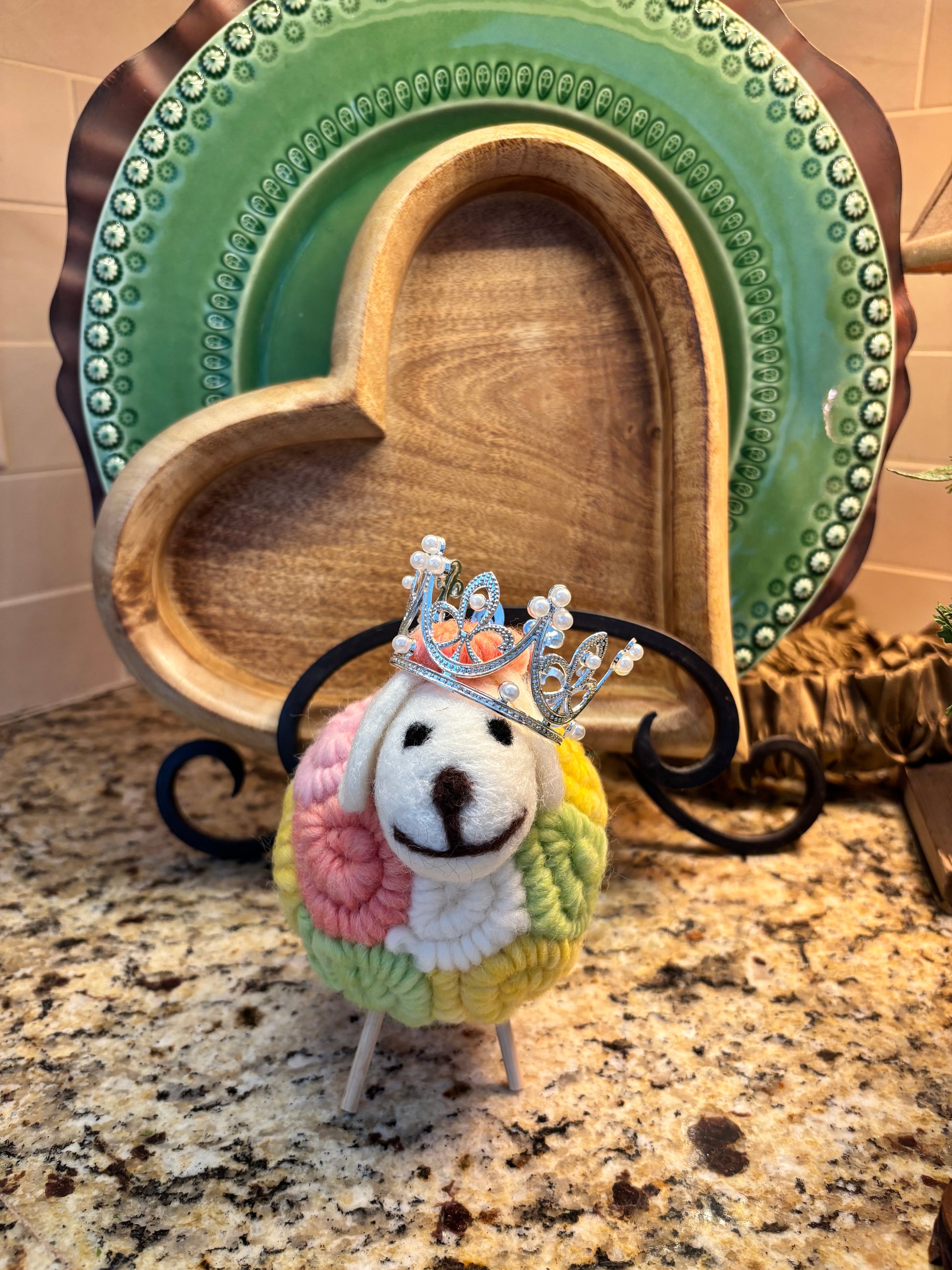 I love using lambs to decorate for Easter as visual reminders that Jesus is the Perfect Spotless Lamb of God who takes away the sins of the World! I also love the verse from Psalms 103:4b where it says God “crowns you with steadfast love and mercy”-displaying visual reminders around my home of His precious truths helps encourage me throughout the day and reminds me to teach the truths to my children Deuteronomy 6:7….soooo that’s why I fell in love with this Adorn able Lamb.