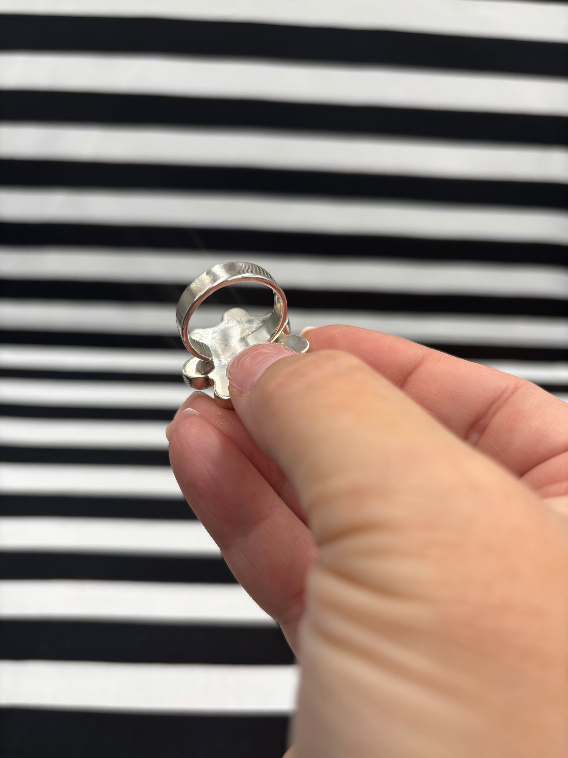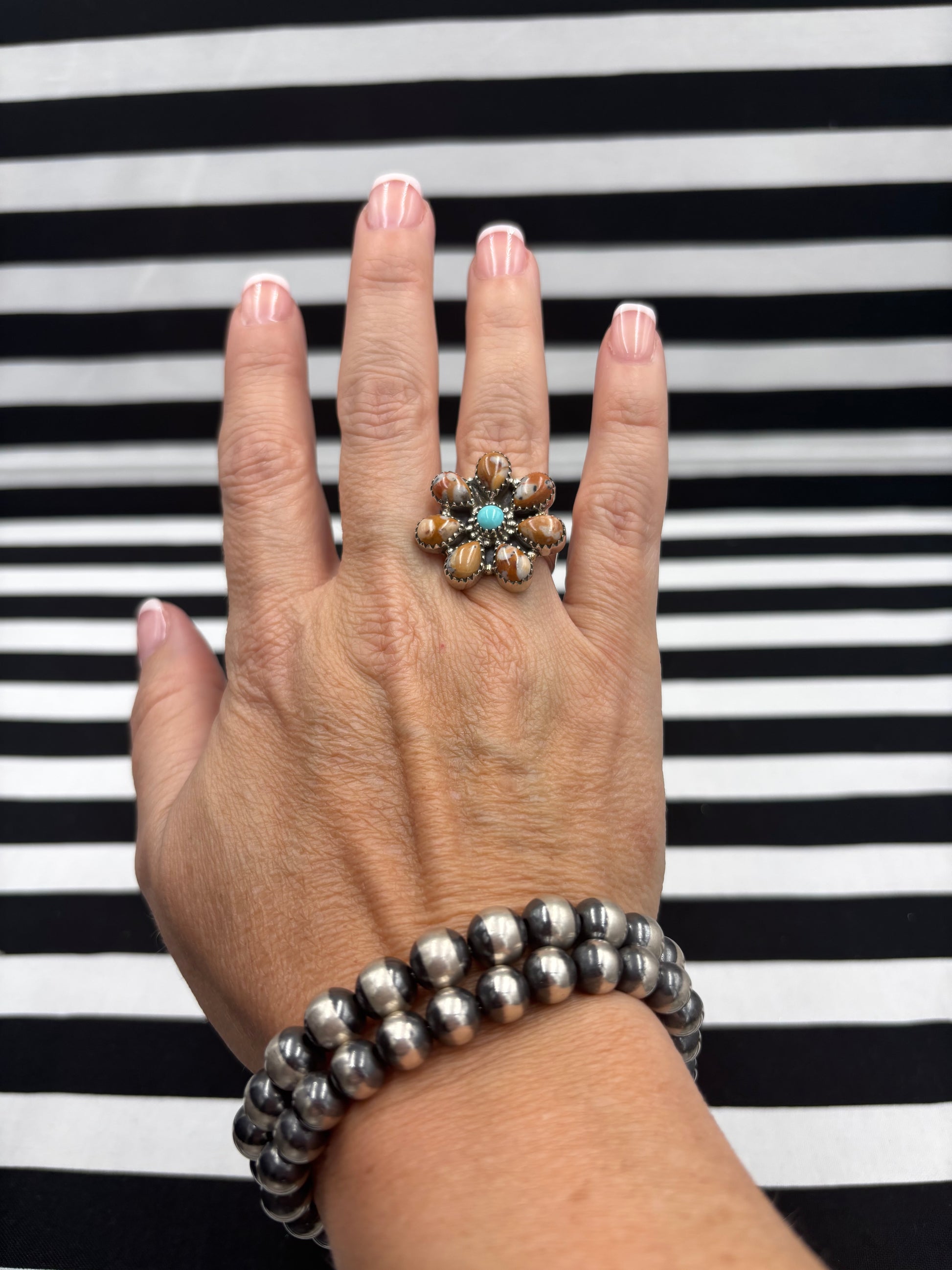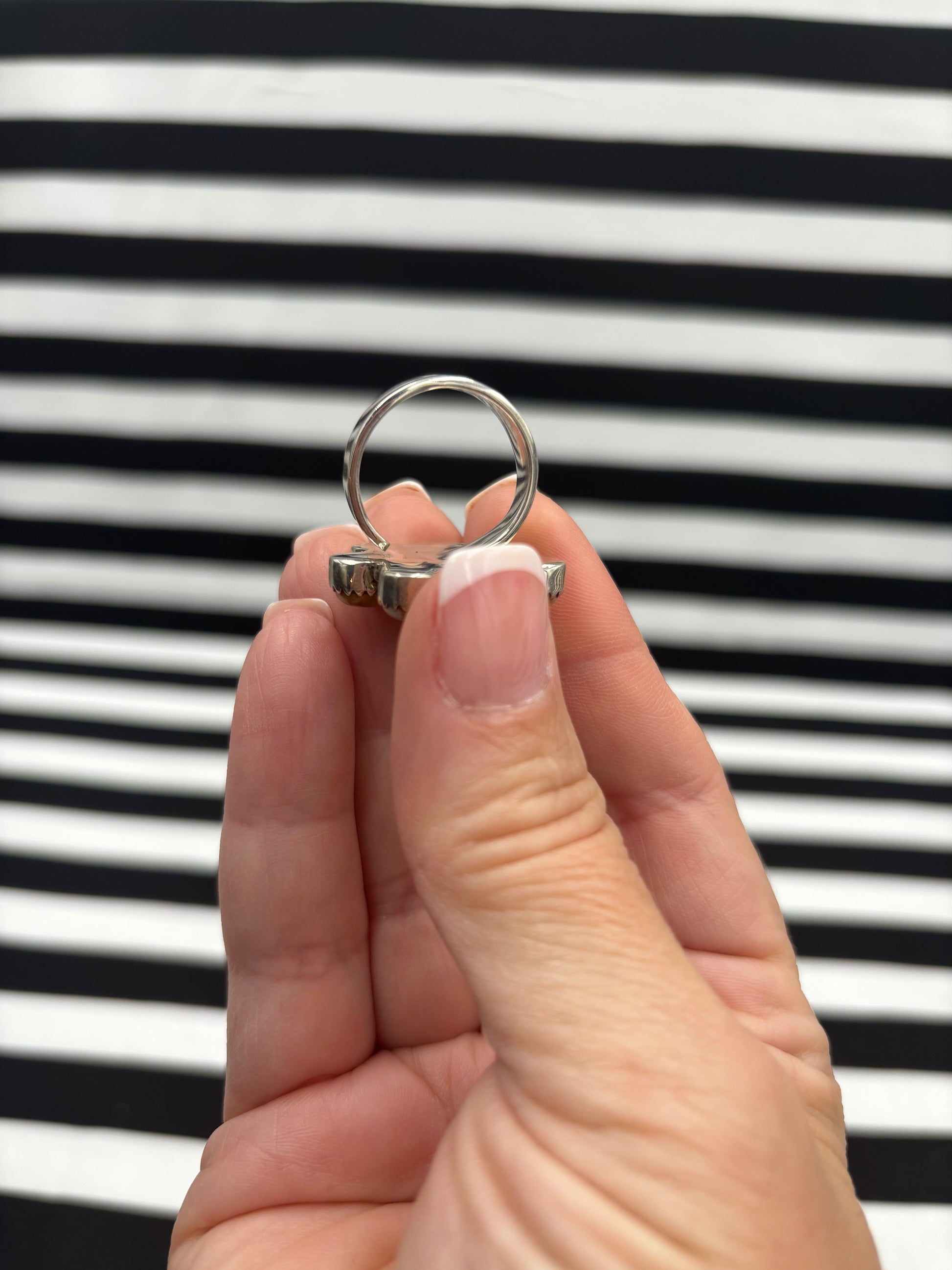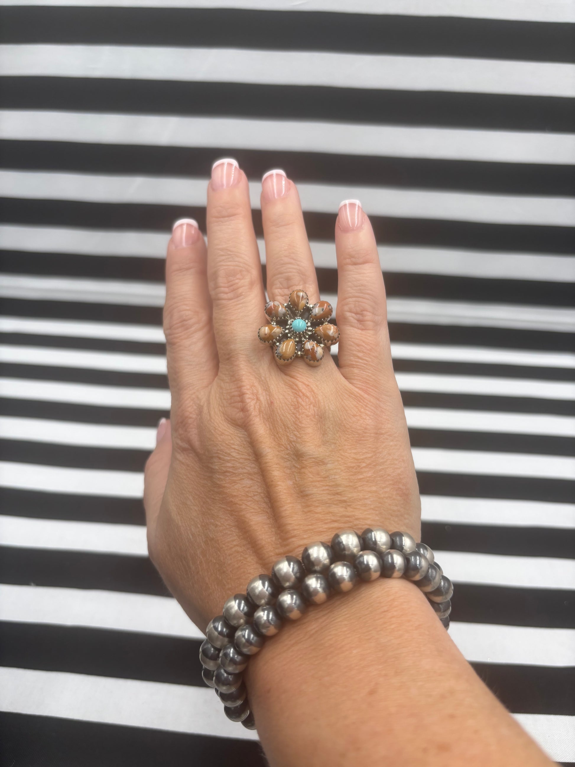 Genuine Bambi Turquoise Ring is not too big and not too small it’s just the right size!  This lovely adjustable band allows the ring to be worn on every finger for comfort and the gauge of thickness is perfect for comfort and strength!  You will LOVE this!