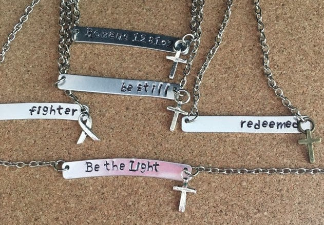When checking out please list what you would like the necklace to have hand stamped and any other special instructions (for example the orientation to the left, right or centered….charm placement if added etc) feel free to email me at adorn2u@gmail.com with any questions.