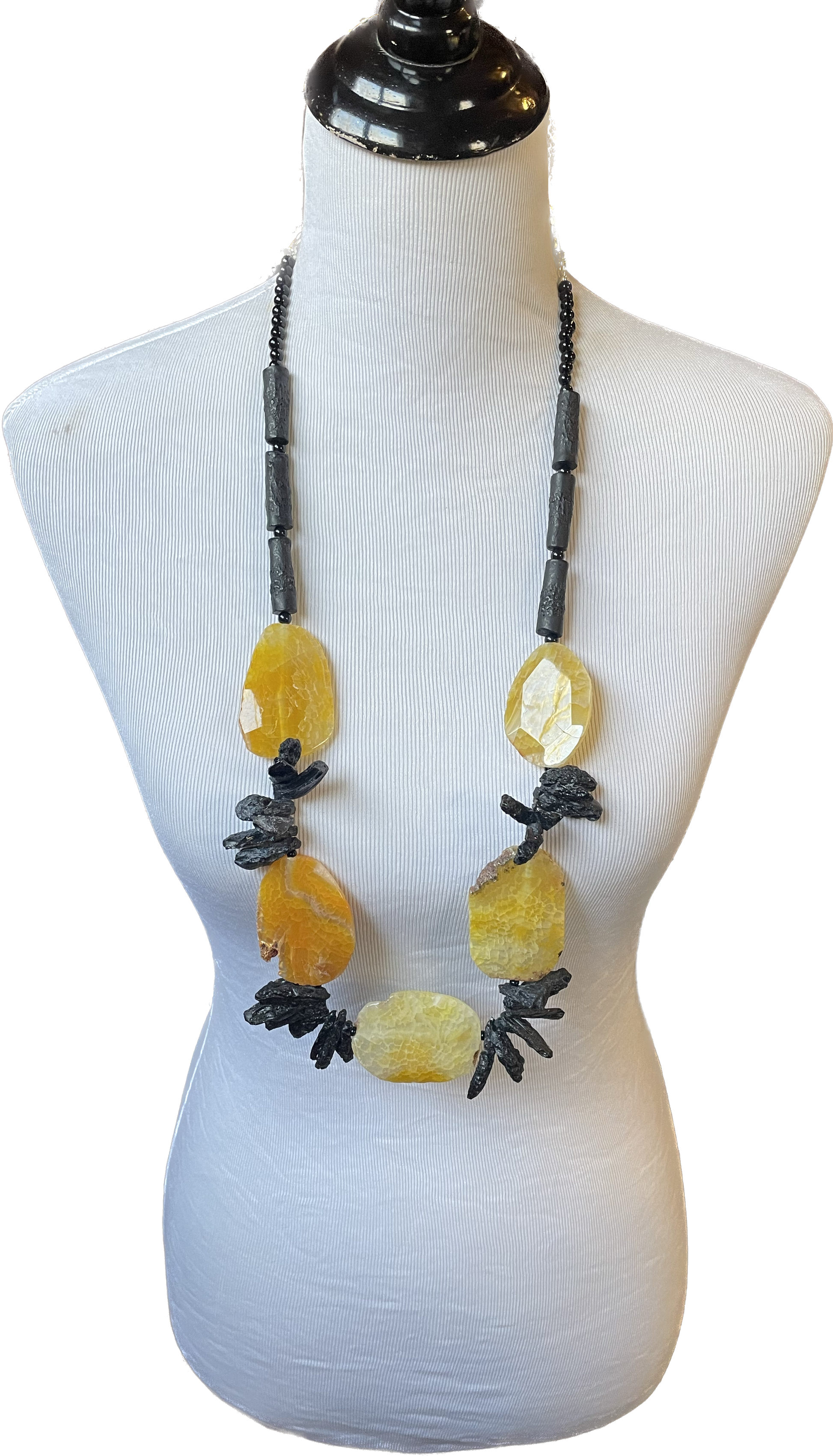 The Lava and Honey Necklace can be used to place aroma therapy essential oils on the lava stones so once again Adorn by Jennifer offers multifunctional Adorn-a-ments! This necklace also has an extender as you can see in the picture giving extended length options!