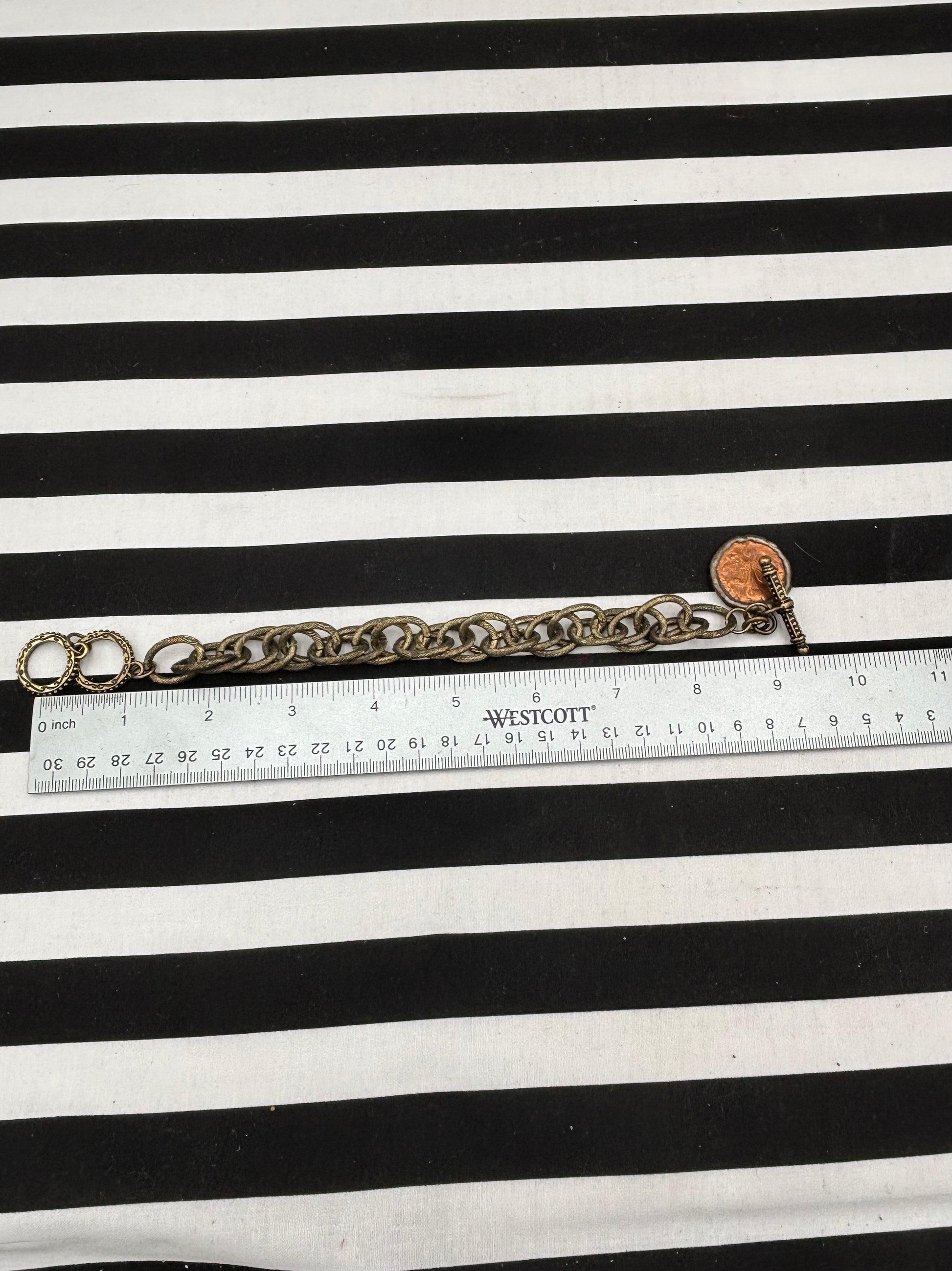 This elegant Coin Around Bracelet is as linked and is adorned with a hand sauntered English Queen Elizabeth Coint featuring a gorgeous flier de les on the back! A daily piece with several extender optional links if wished if not they lay beautifully with the coin charm!