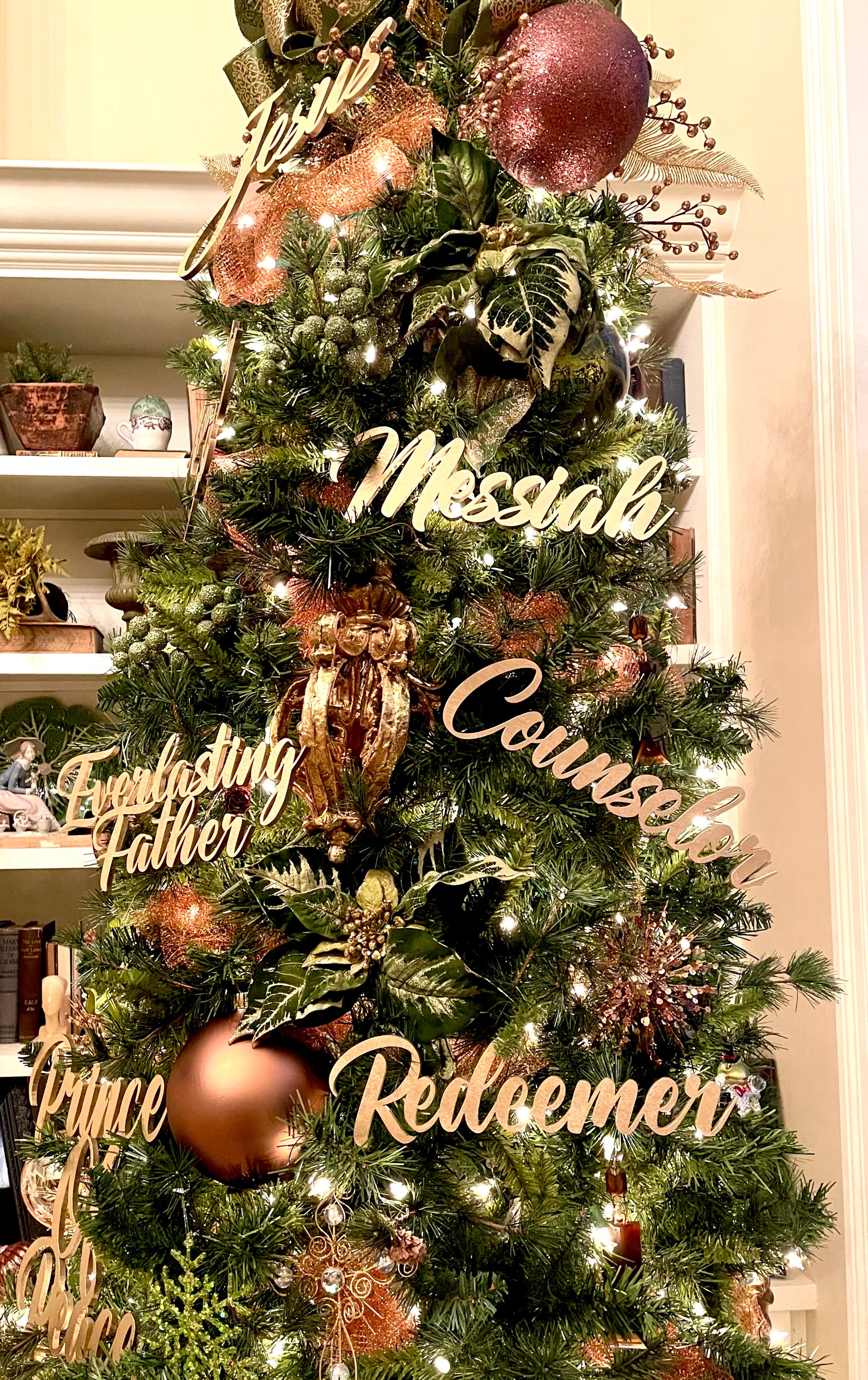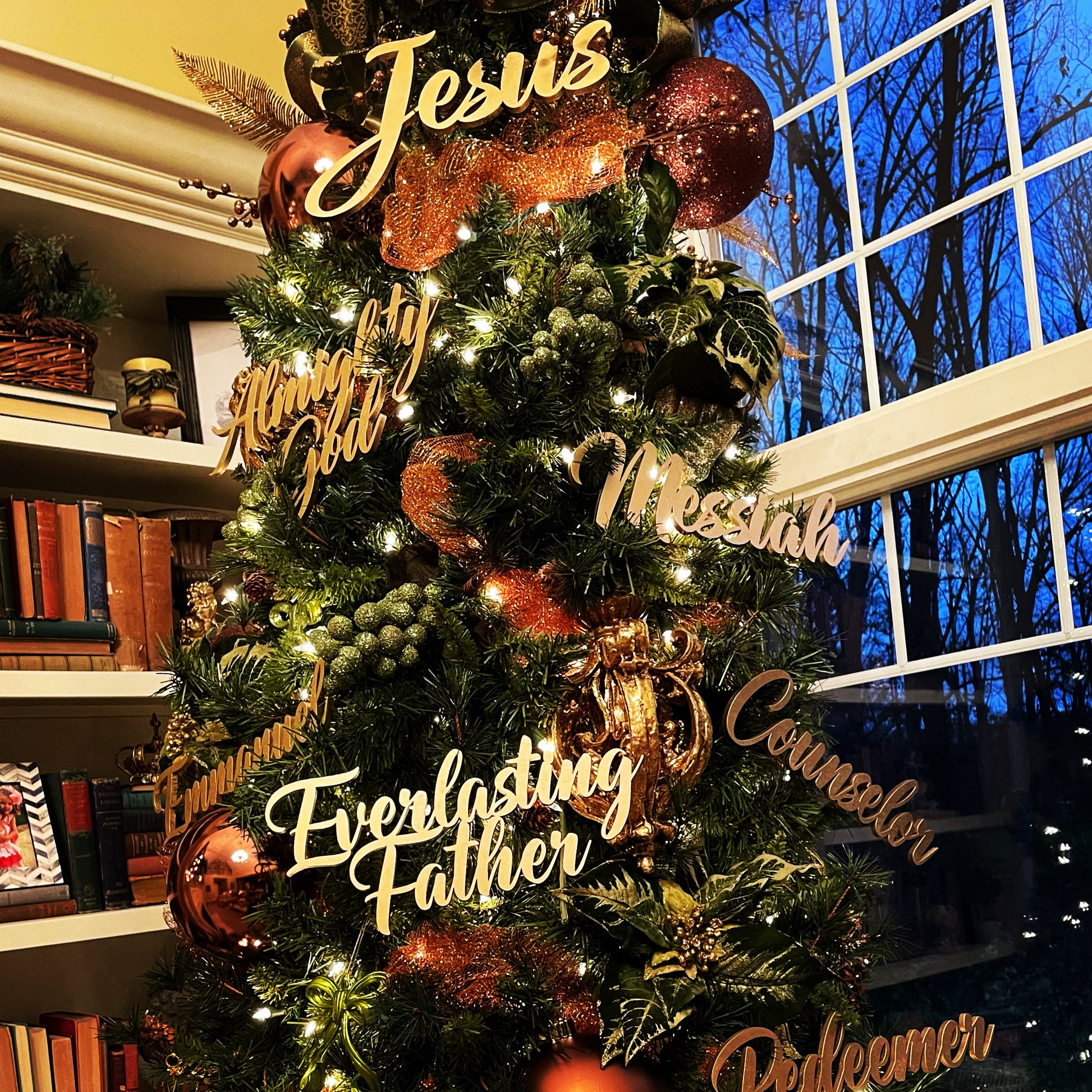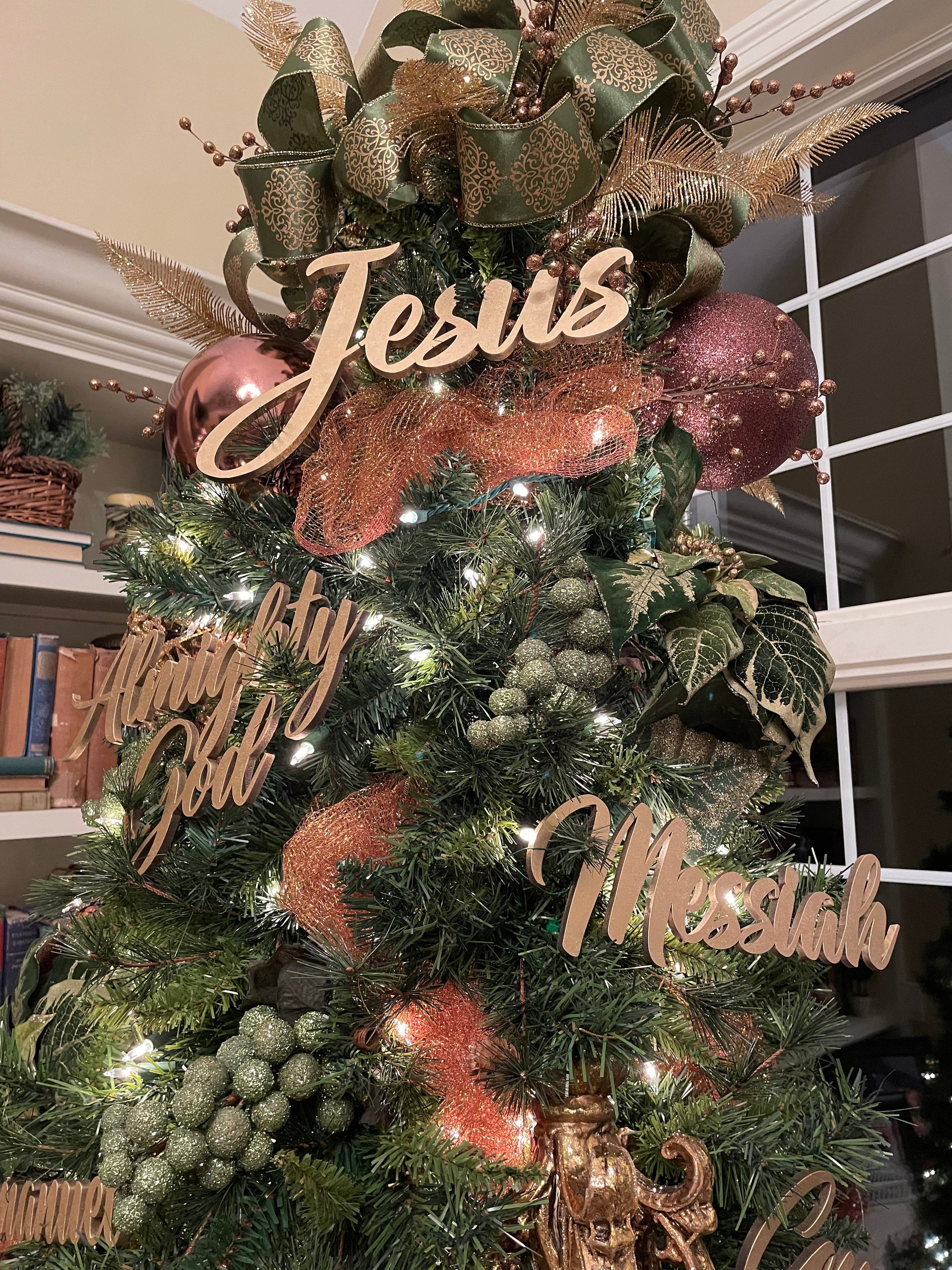 ***On some social media platforms the stage trees at our church are shown in pictures (they have the huge gold star at the top-these "Jumbo" huge ornaments are show on 12 foot trees and those ornaments are over 2-3 feet! *The Jumbo size are currently unavailable (although typically they were listed under a separate listing and featured a variety of additional names of Jesus. They were a fantastic option for church trees, commercial trees or even extra large home Christmas Trees!