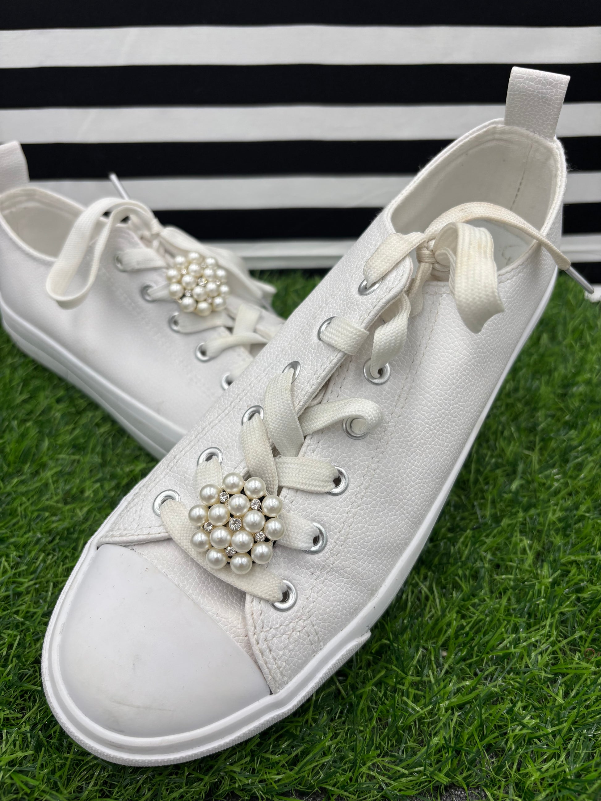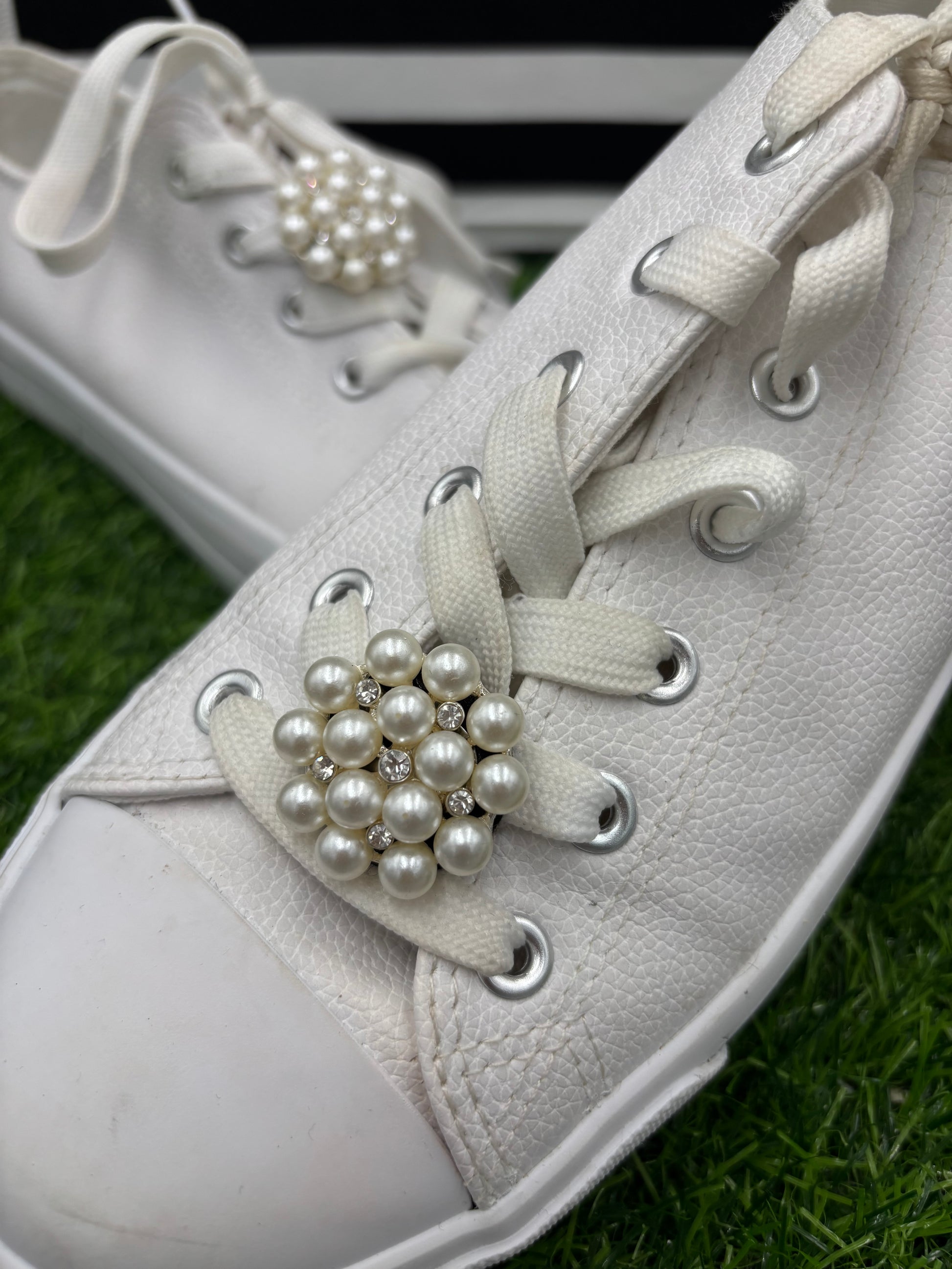 Pearl Twirl Shoe Clips that can clip to almost anything: purse, scarf, shirt, jacket, flip flop even home accessories like a lampshade! Takes something ordinary and “Adorn” it to something extraordinary! Mix and match for fun a fashion! 2 Pearl Twirl Shoe Clips Included in Order *Shoes not included. Please wear clips with care as they may pop off with movement-particularly on rubber flip flops*