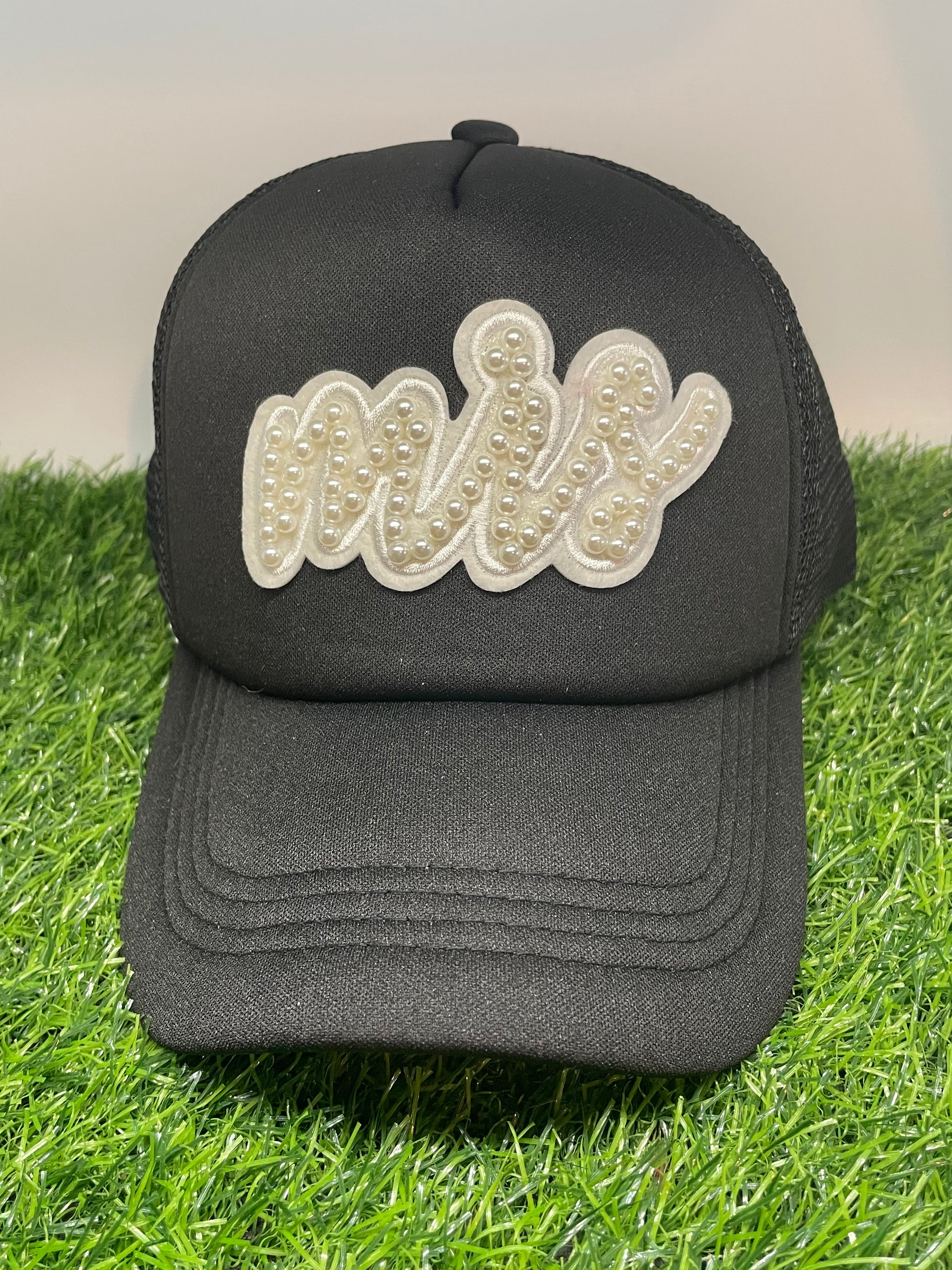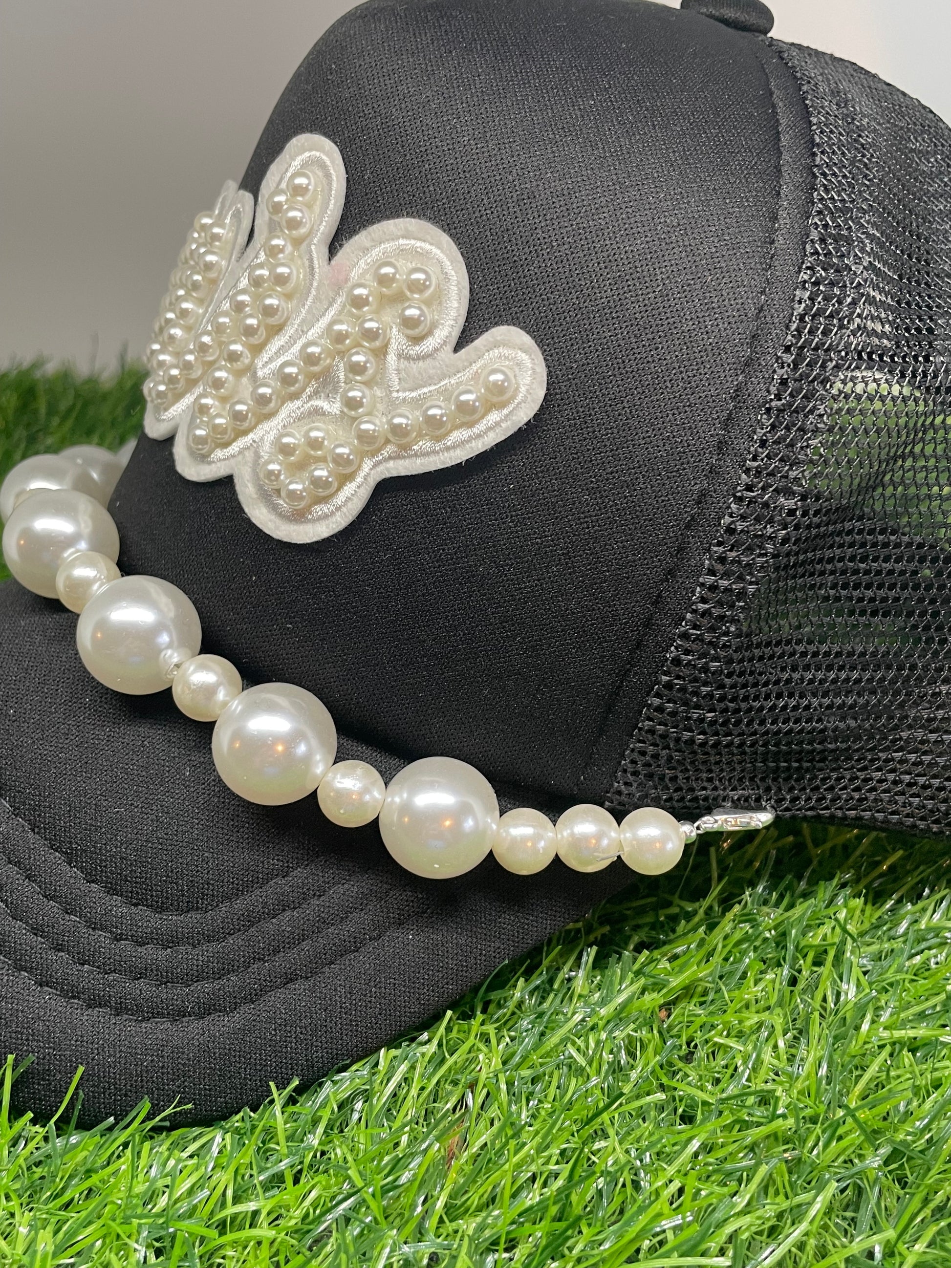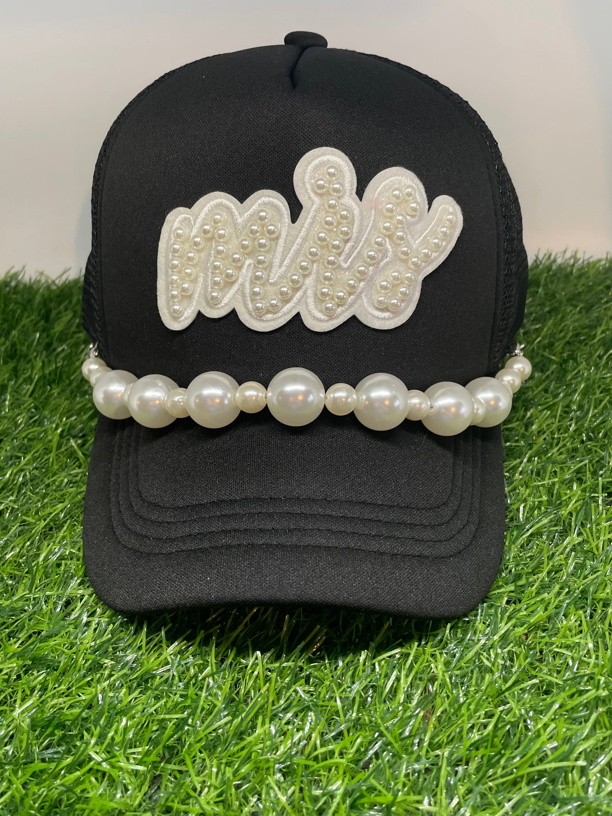 Mrs Trucker Hat & Pearl Hat Band Necklace