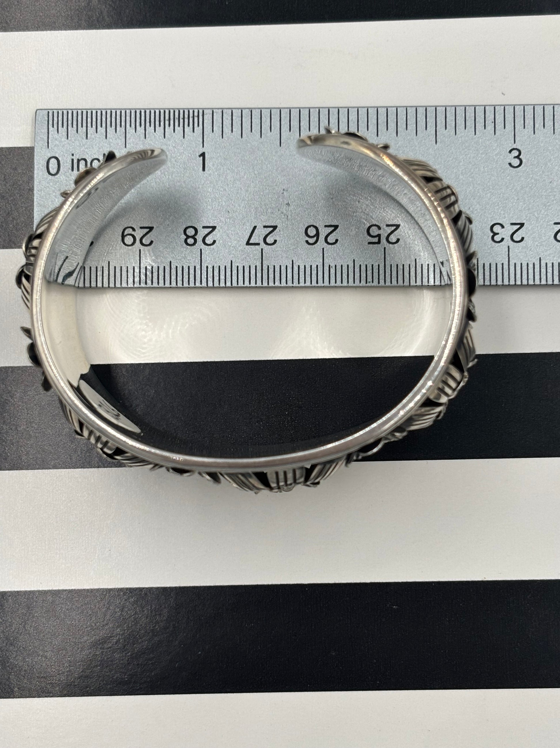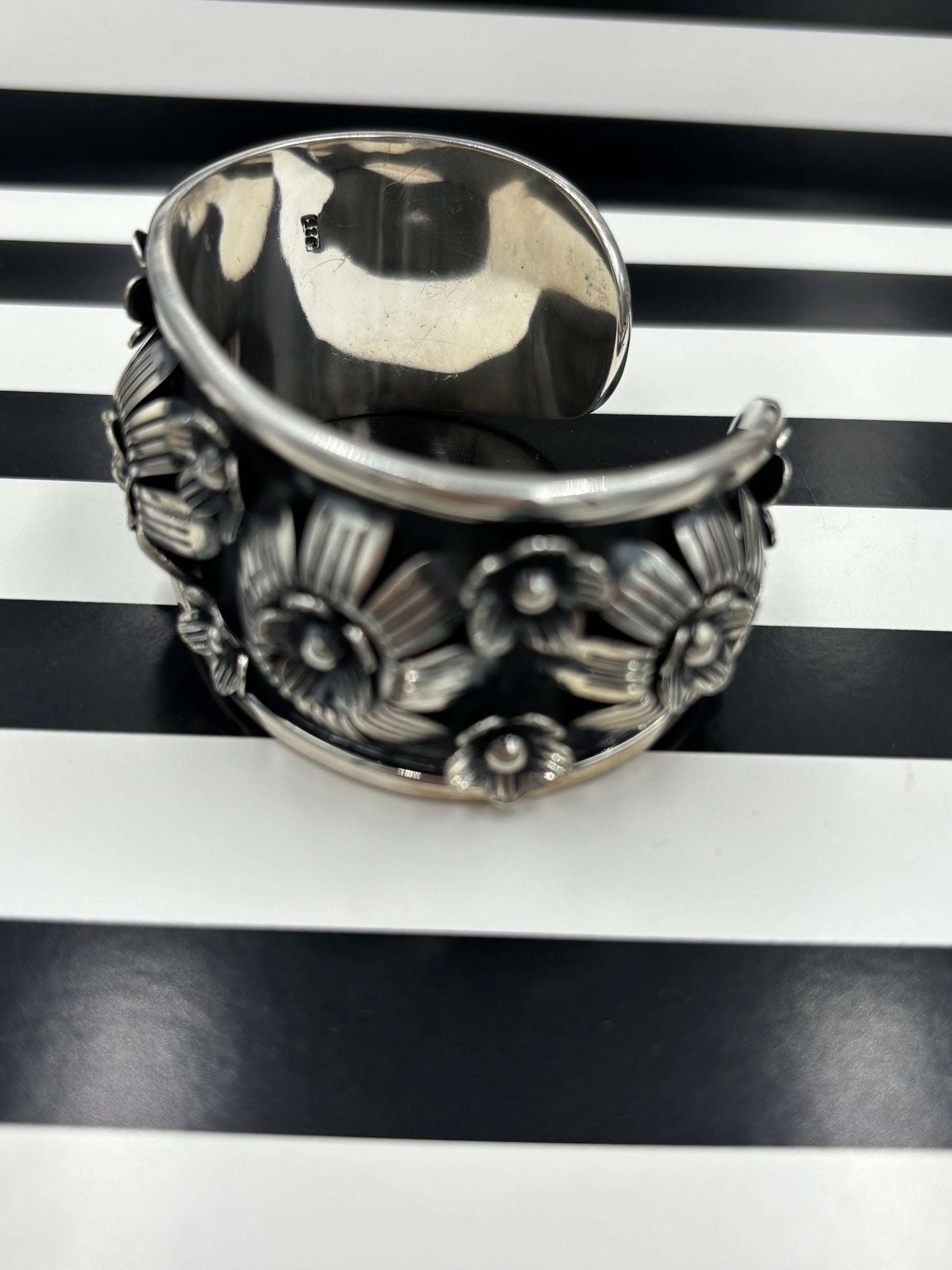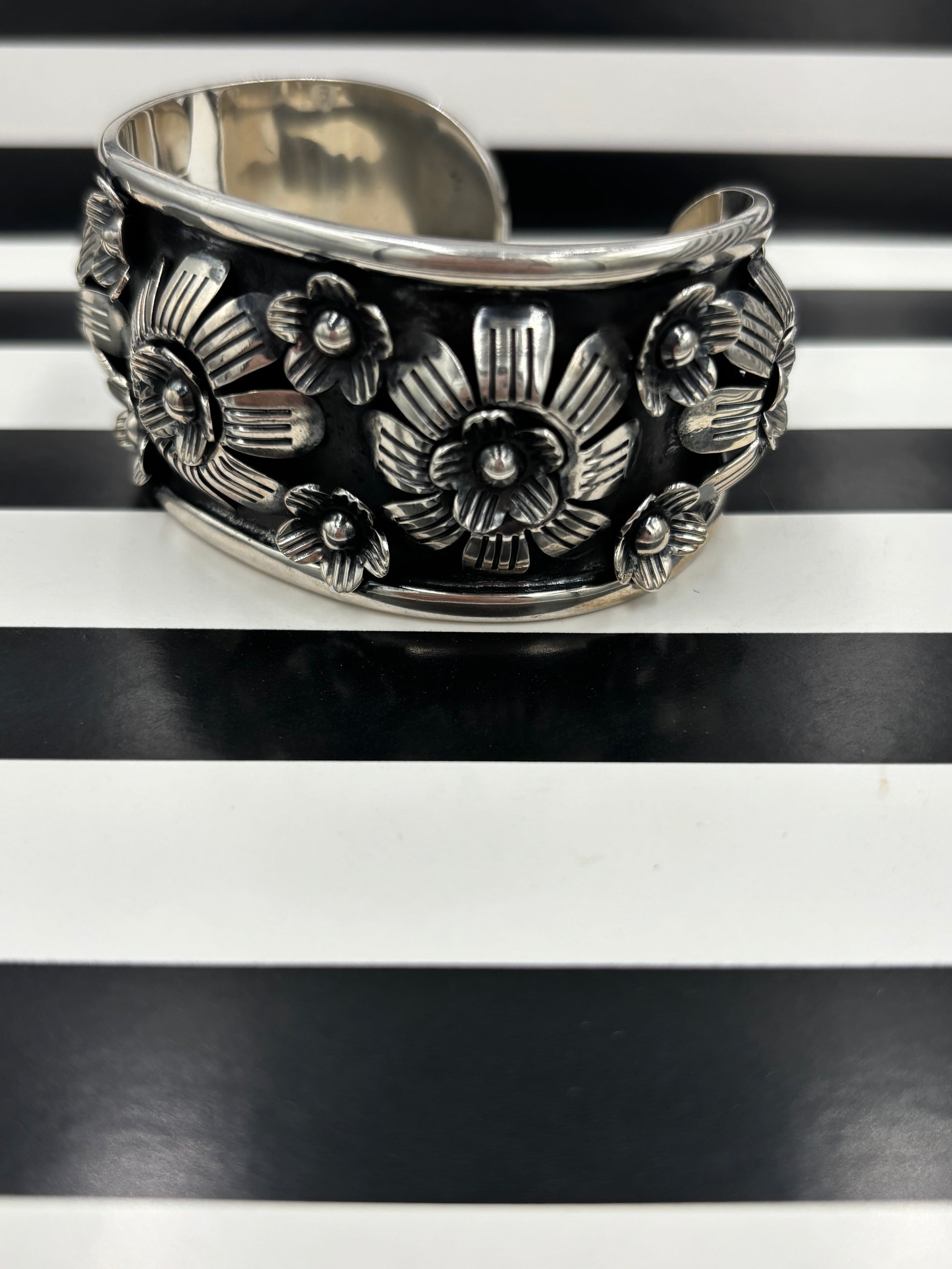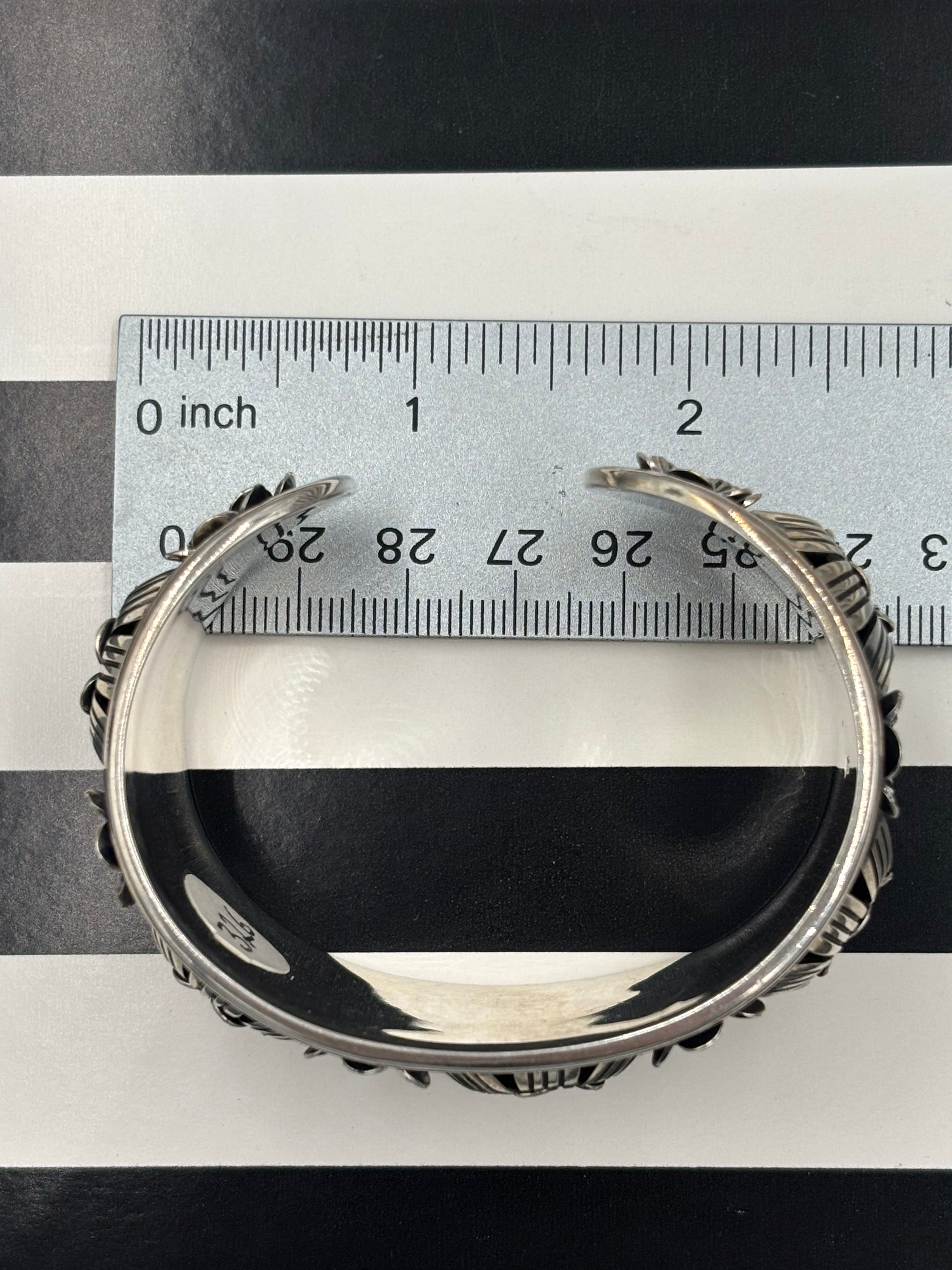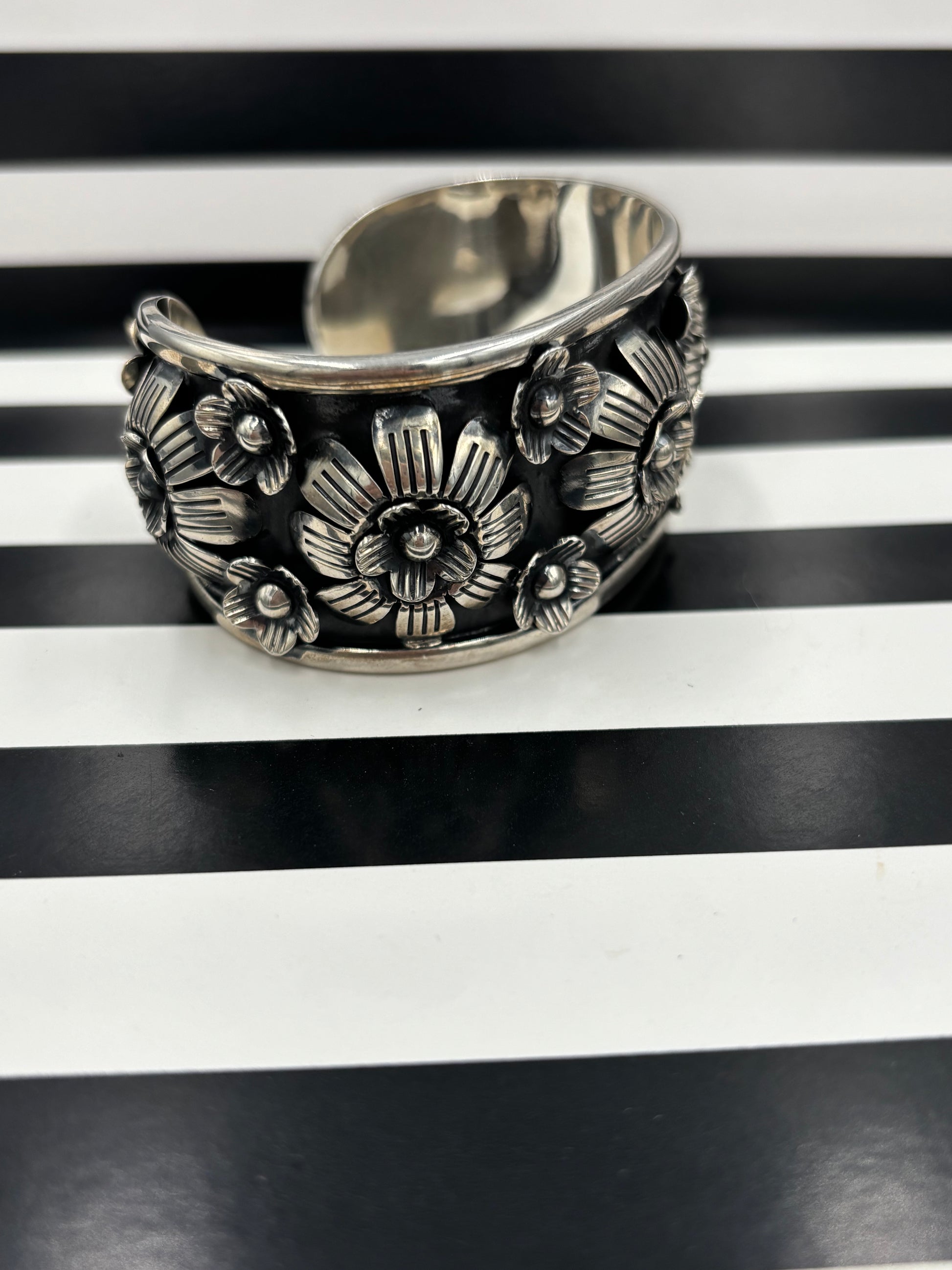 Pass on the bouquet of flowers and add this sterling boutique of flowers wrapped in a cuff! Each of these flowers made of sterling silver are a masterpiece! You will find yourself staring at your wrist in admiration of this masterpiece-and no pollen producing allergies or sneezing from these gorgeous flowers!