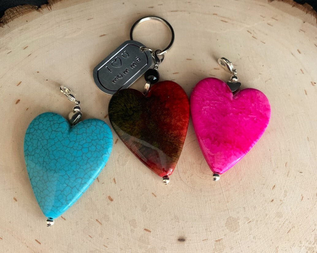 Easy to clip Lovin' Heart Charm can be added to existing necklace chain, beaded statement jewelry, Key Chains, Purses, Backpacks, Ribbons, Homecoming Mums, School Spirit attire, wedding bouquets or floral arrangements.... the options are unlimited! 3 colors are currently available. Please select your preference!