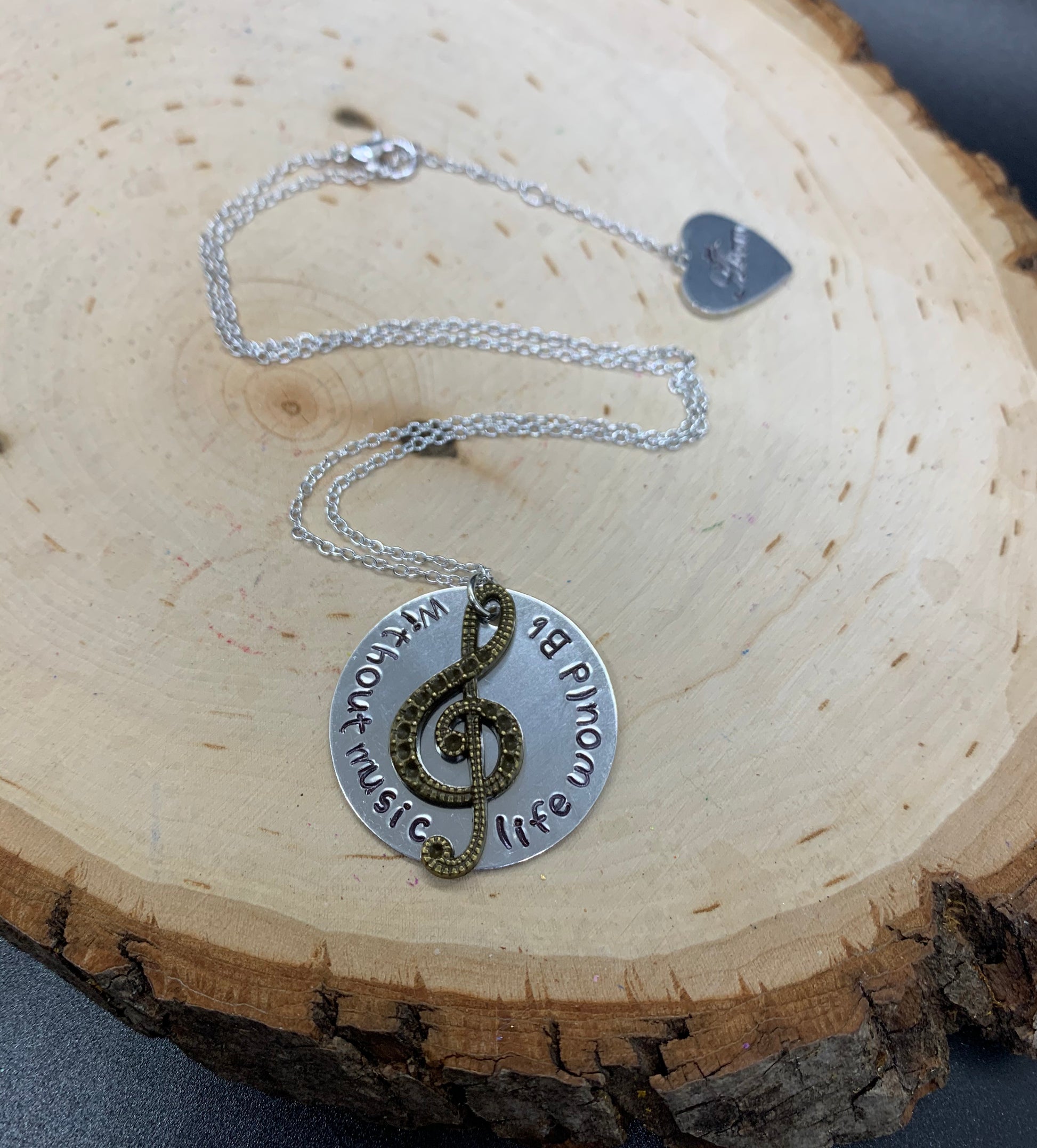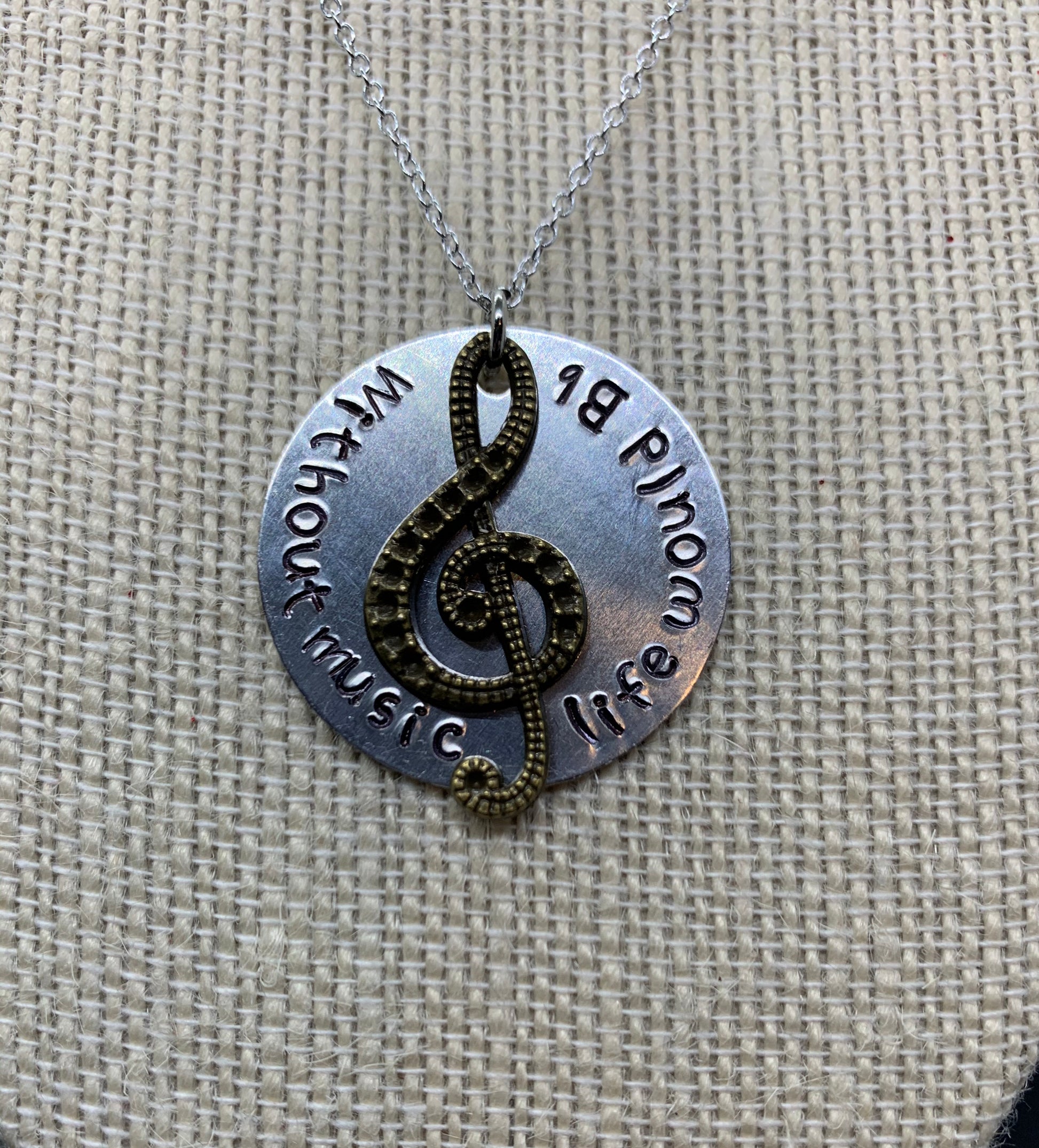 Get it! If you are a musician you do! This is the perfect necklace for your music teacher or someone who loves music! Snag this up as a thoughtful and personalized handmade one of a king treasure or should it be said “ADORN-AMENT”!