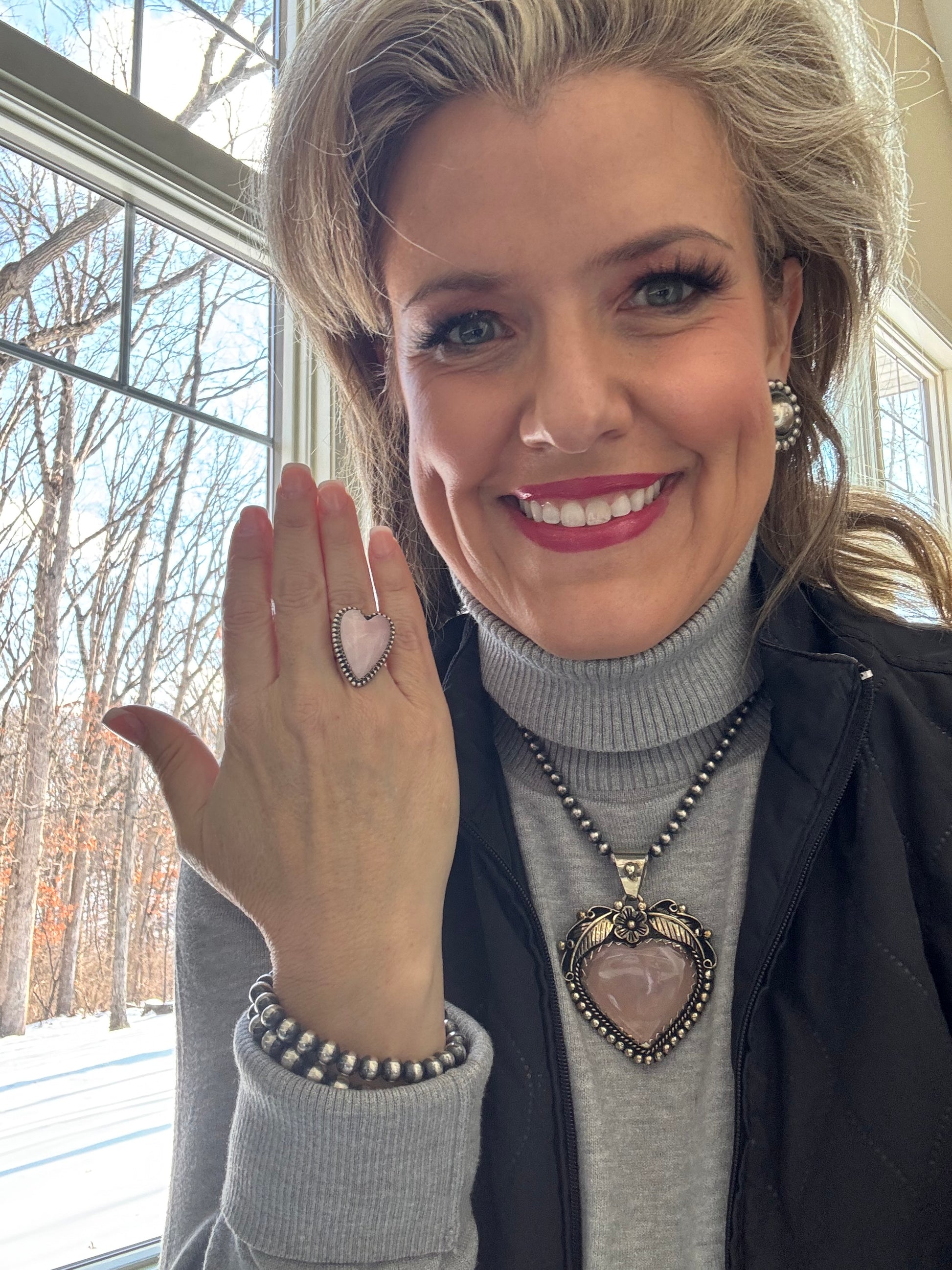 It pairs perfectly with the Rose Quartz Heart of the Matter Pendant and the Sterling Silver Omega Necklace and Navajo Pearl Stretch Bracelets