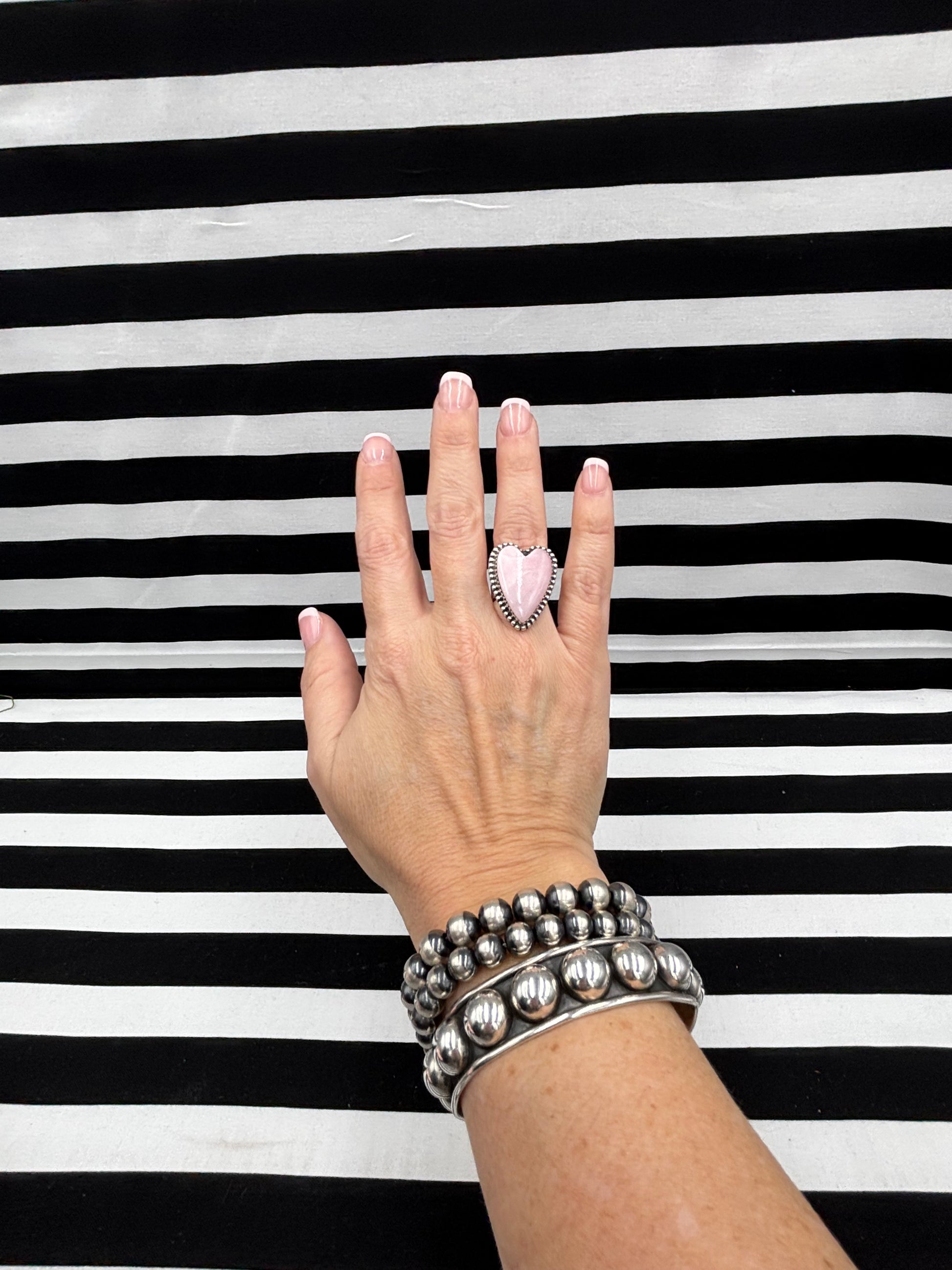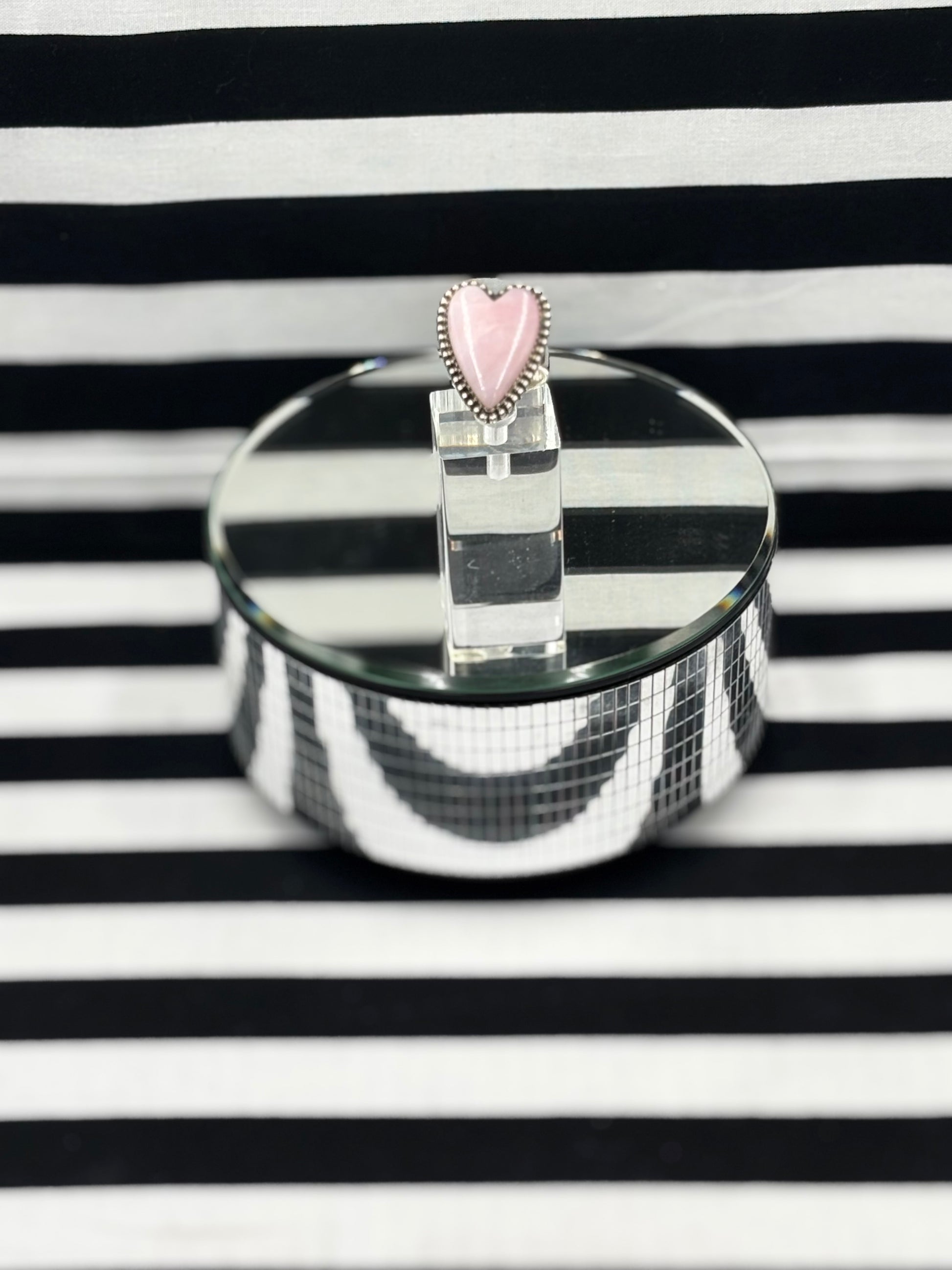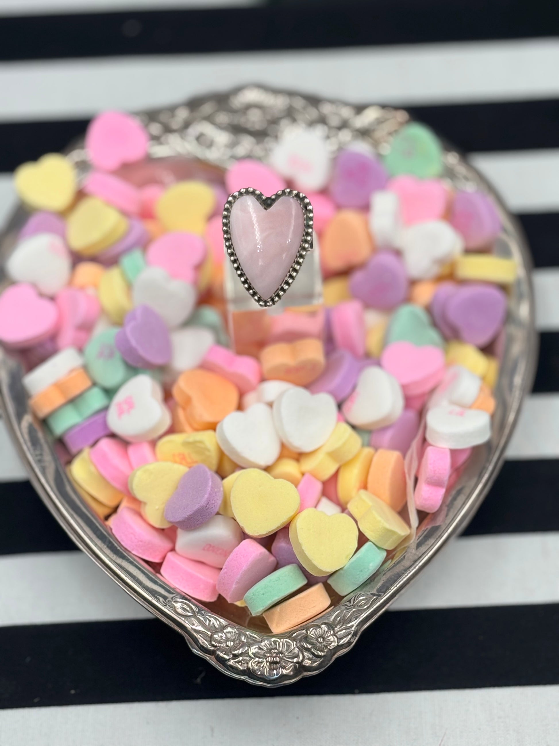 Love Pink Heart Rings Adjustable and features a pink opal set is sterling silver with a thick adjustable band so you can wear it on a different finger every day of the week! This is KrushKandy.