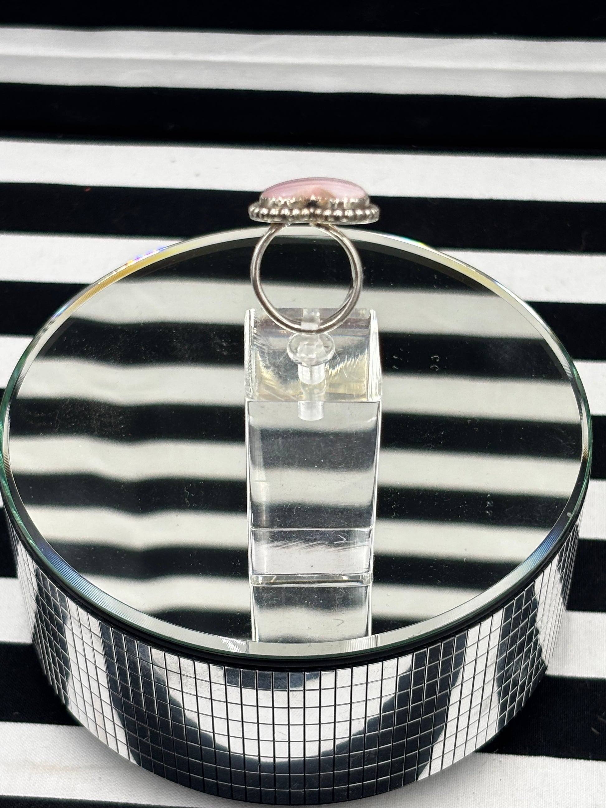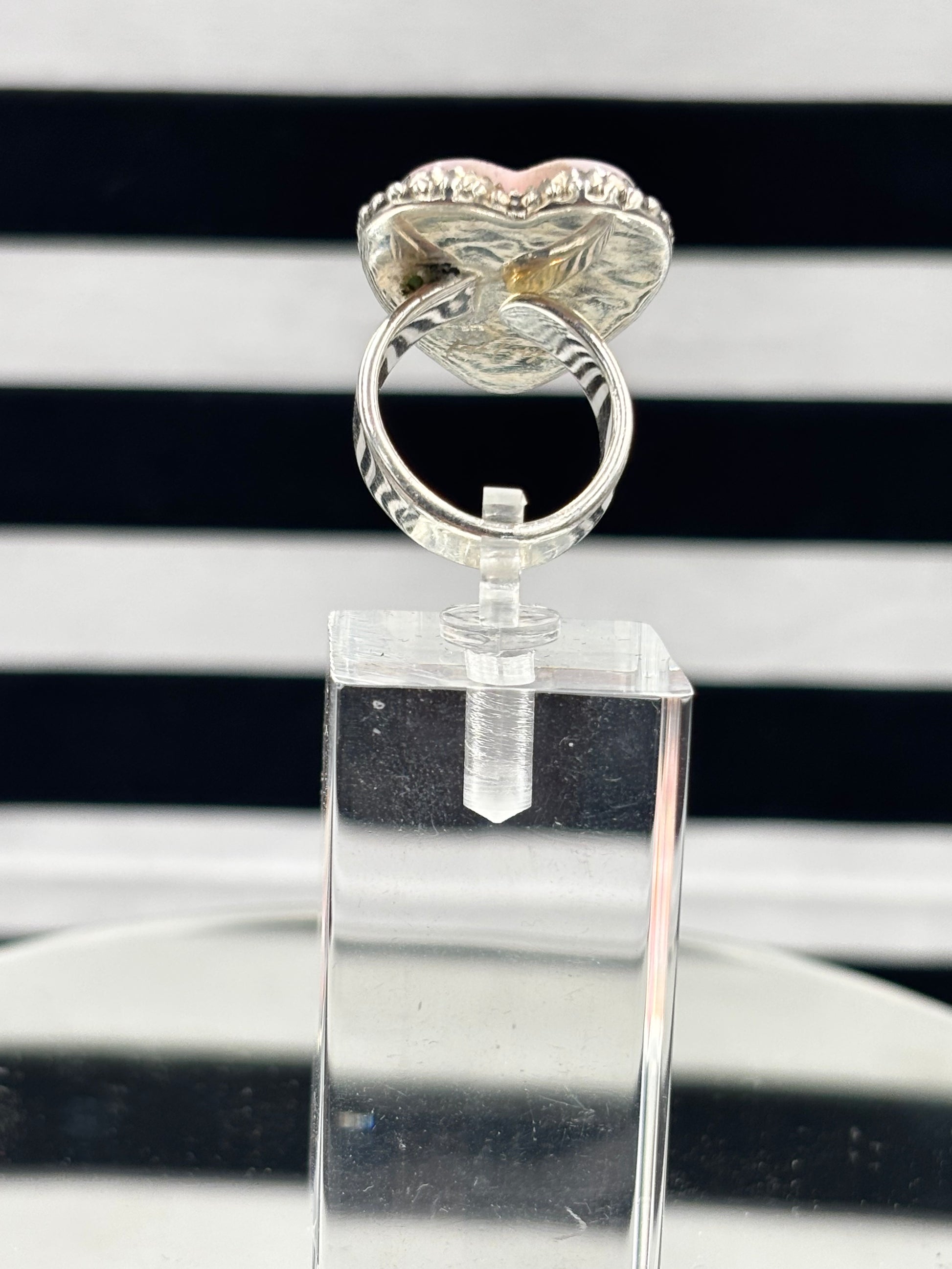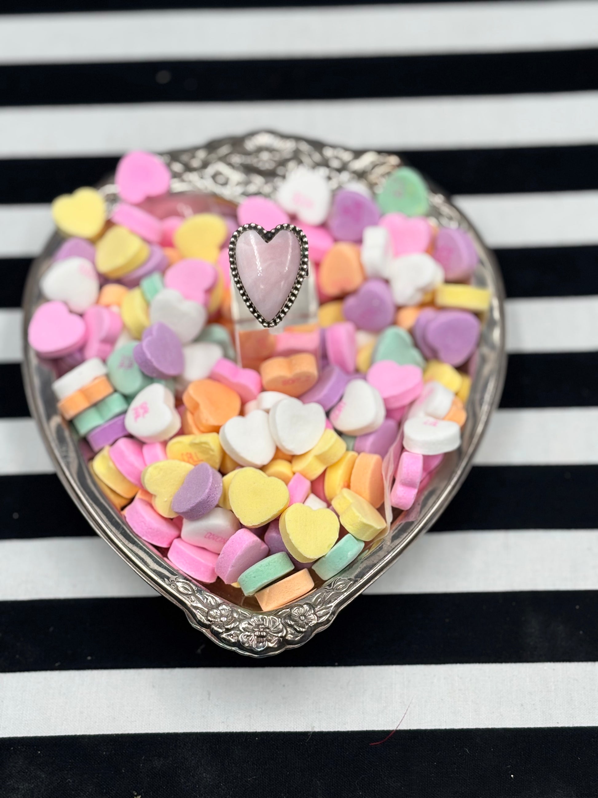 Love Pink Heart Rings Adjustable and features a pink opal set is sterling silver with a thick adjustable band so you can wear it on a different finger every day of the week! This is KrushKandy.
