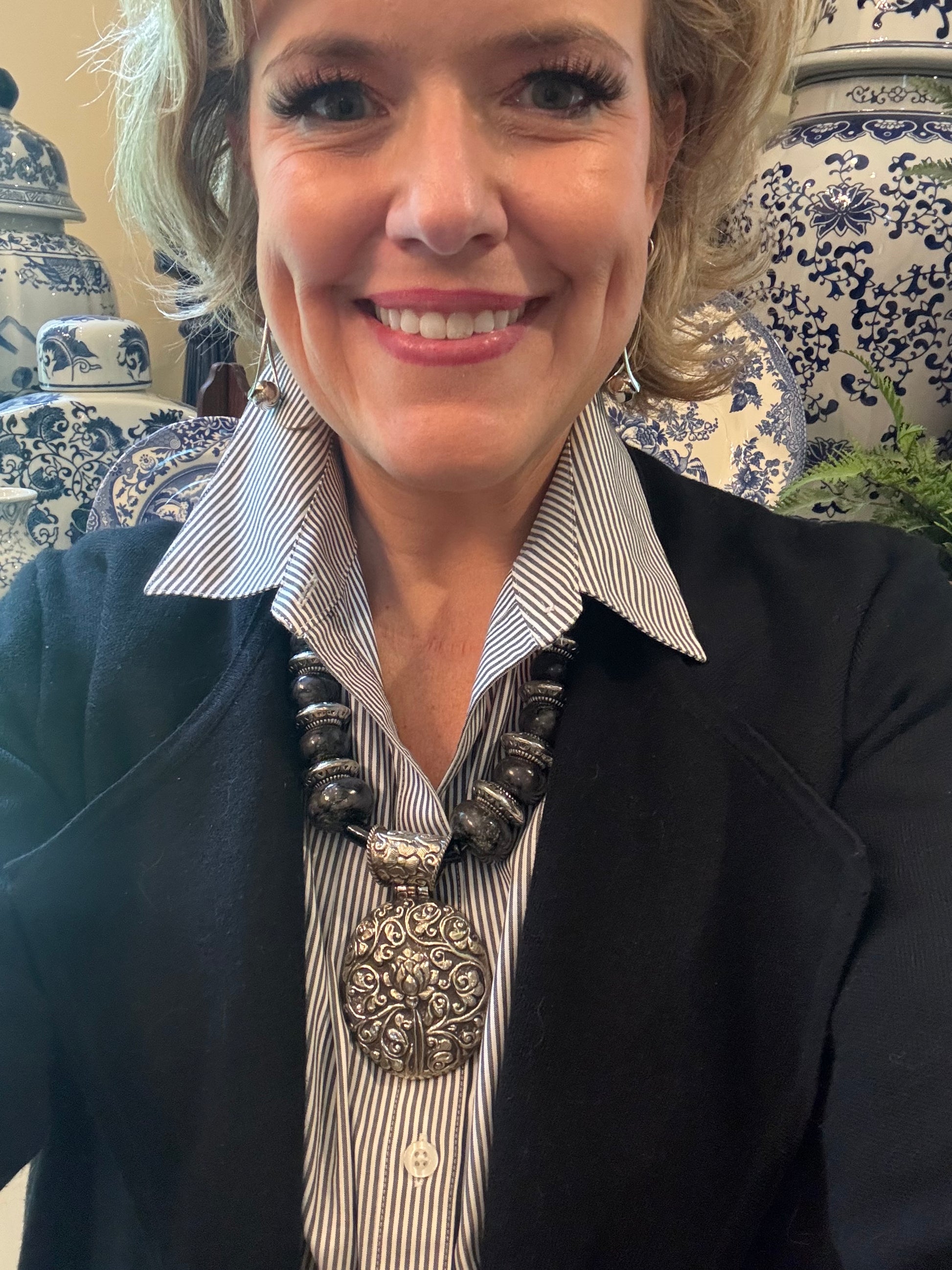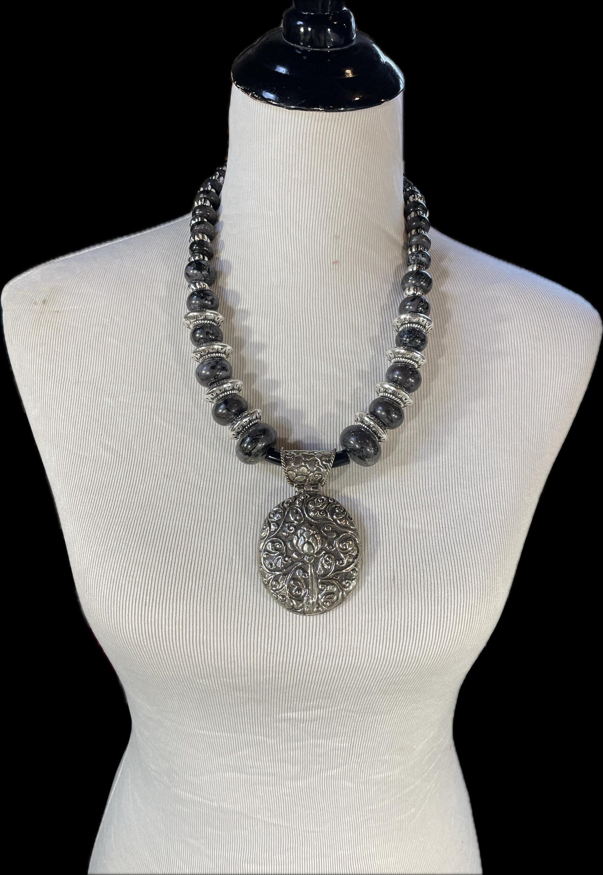 This necklace pairs beautifully with the Classic Rock Earrings.