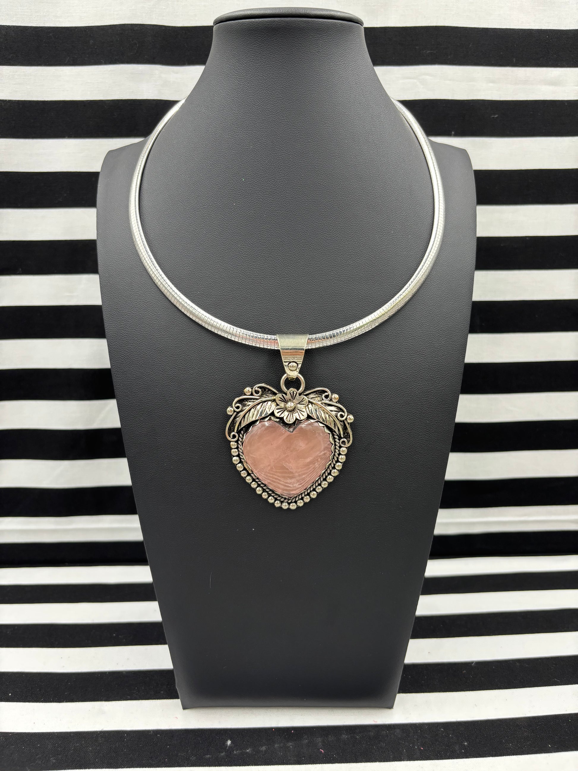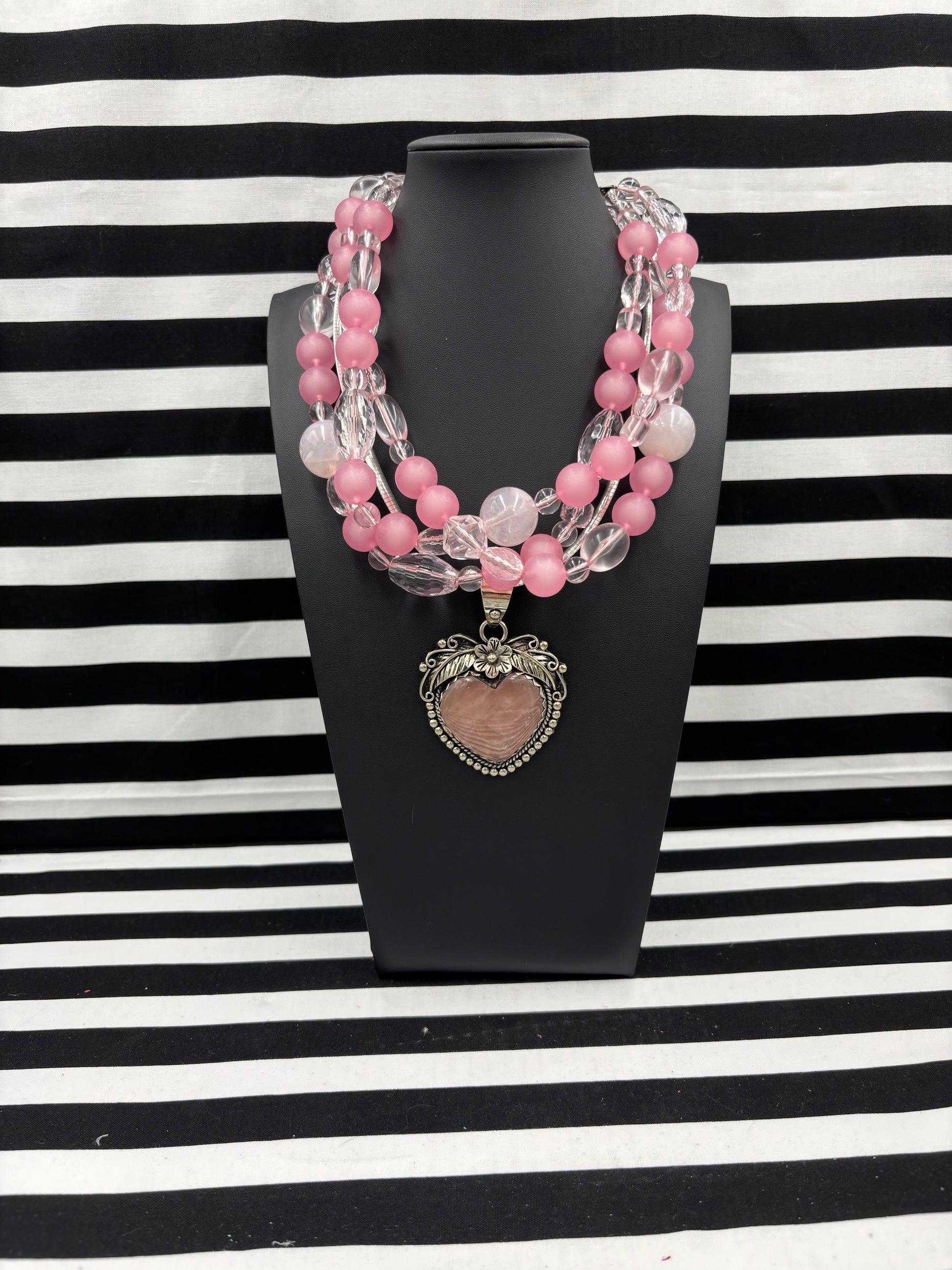 In the pictures in this description, Pink Ice Necklace is layered with the Adorn by Jennifer Omega Necklace and the The Heart of the Matter Pendant (Rose Quartz) each sold separately.