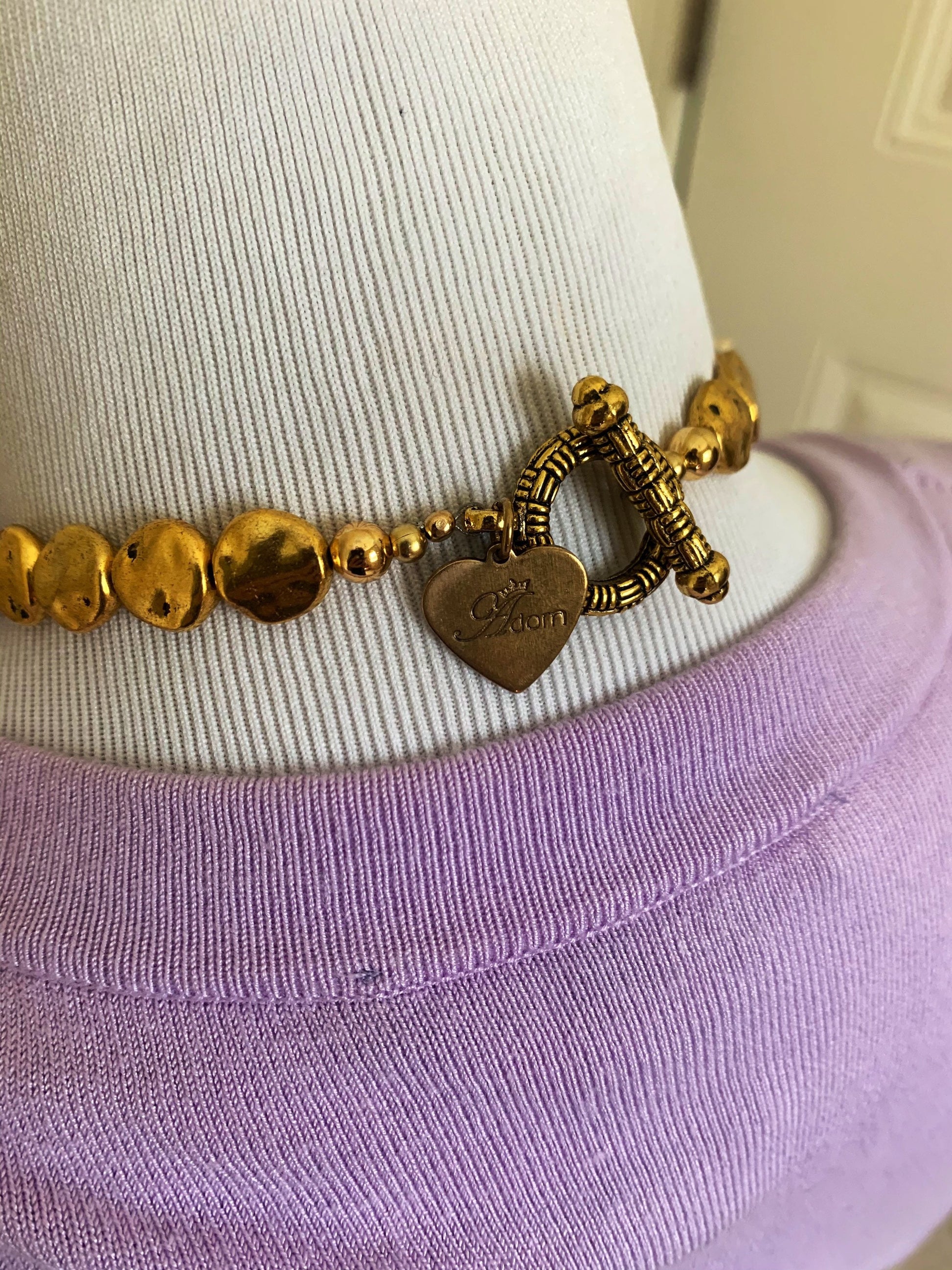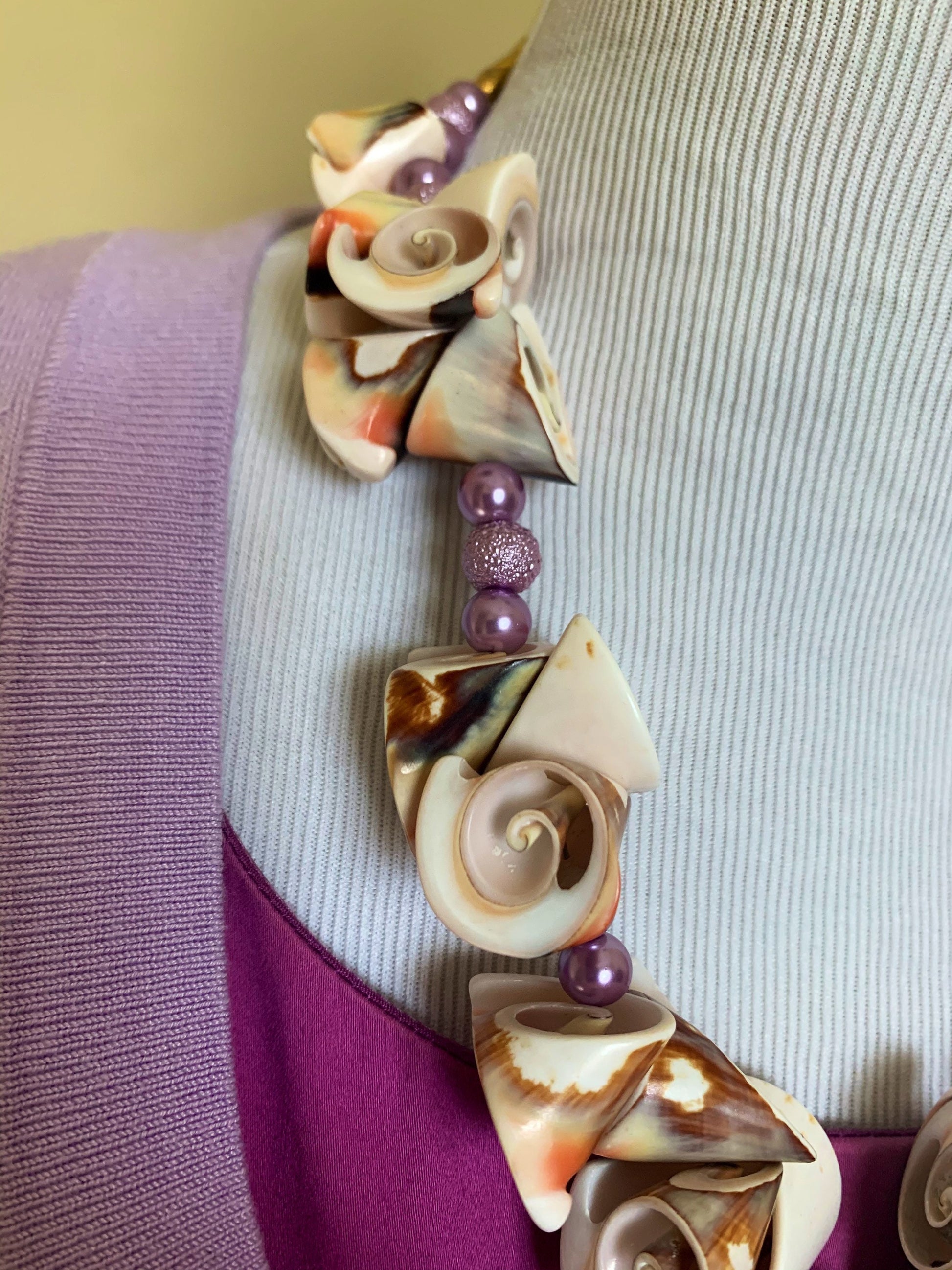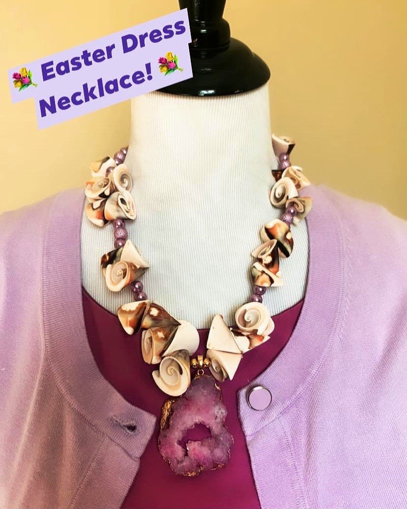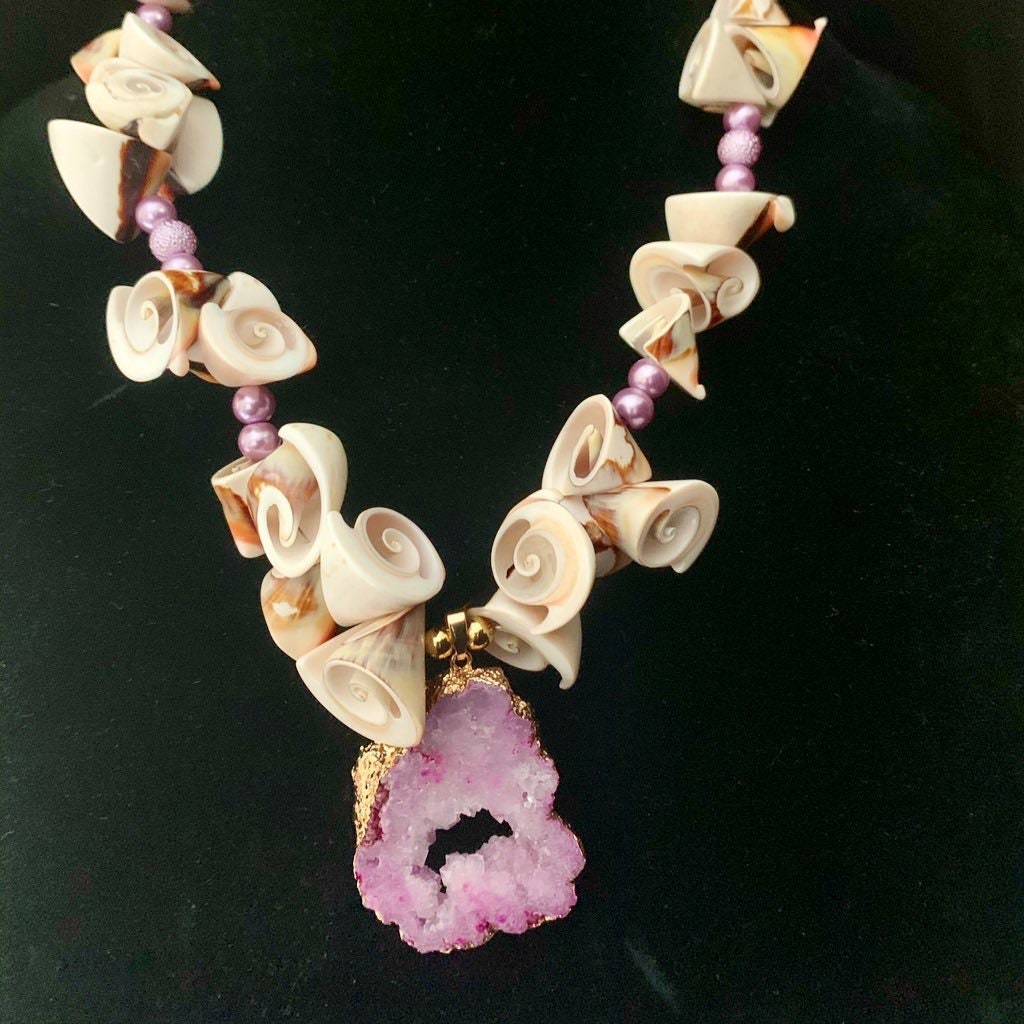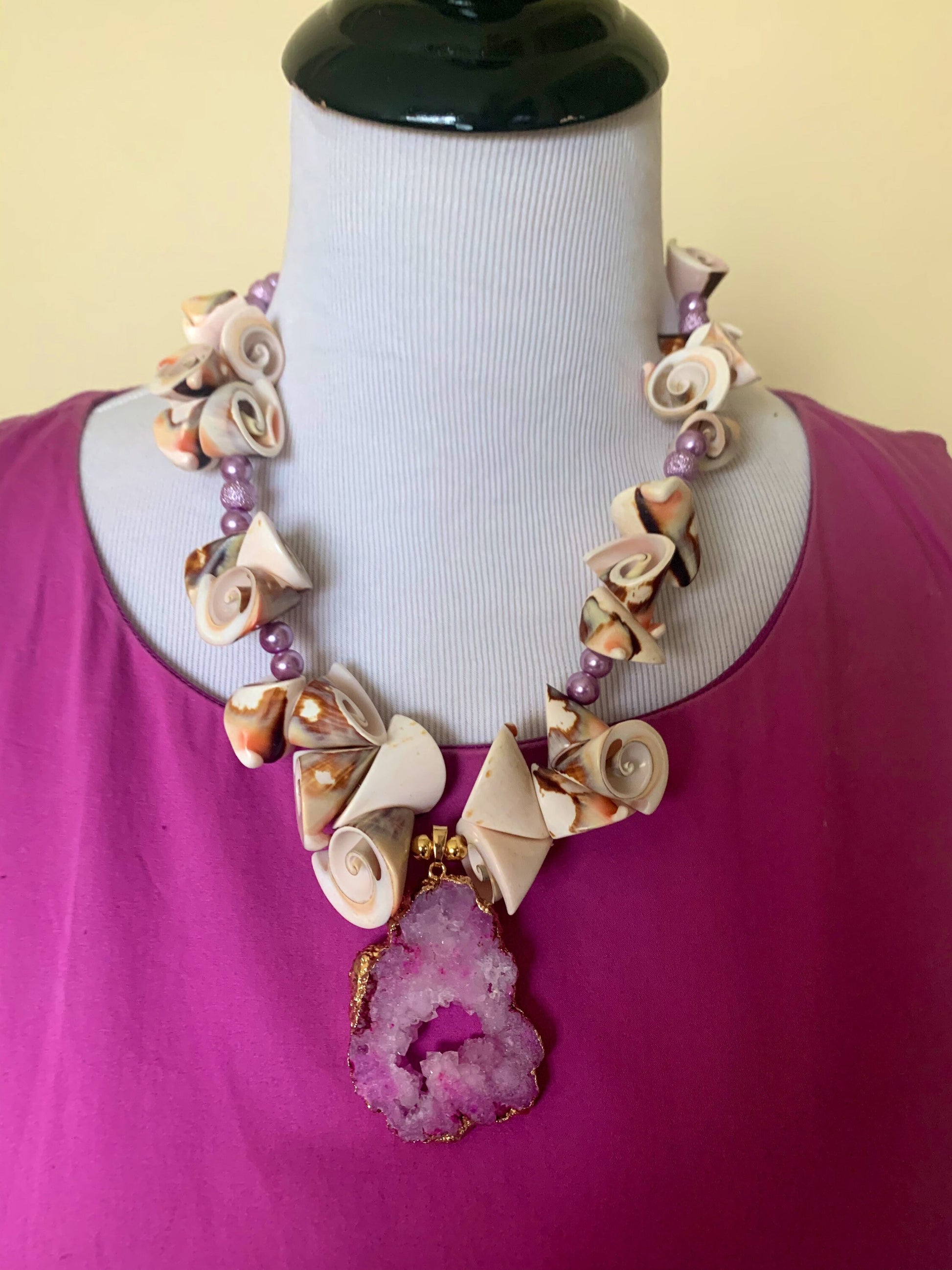 Purple Goodness Necklace is full of gorgeous pearl shell detail adorned with a classic geo styled drop pendant. One of a kind necklace...a show stopper! The Jam Bracelet looks lovely with this necklace as well!