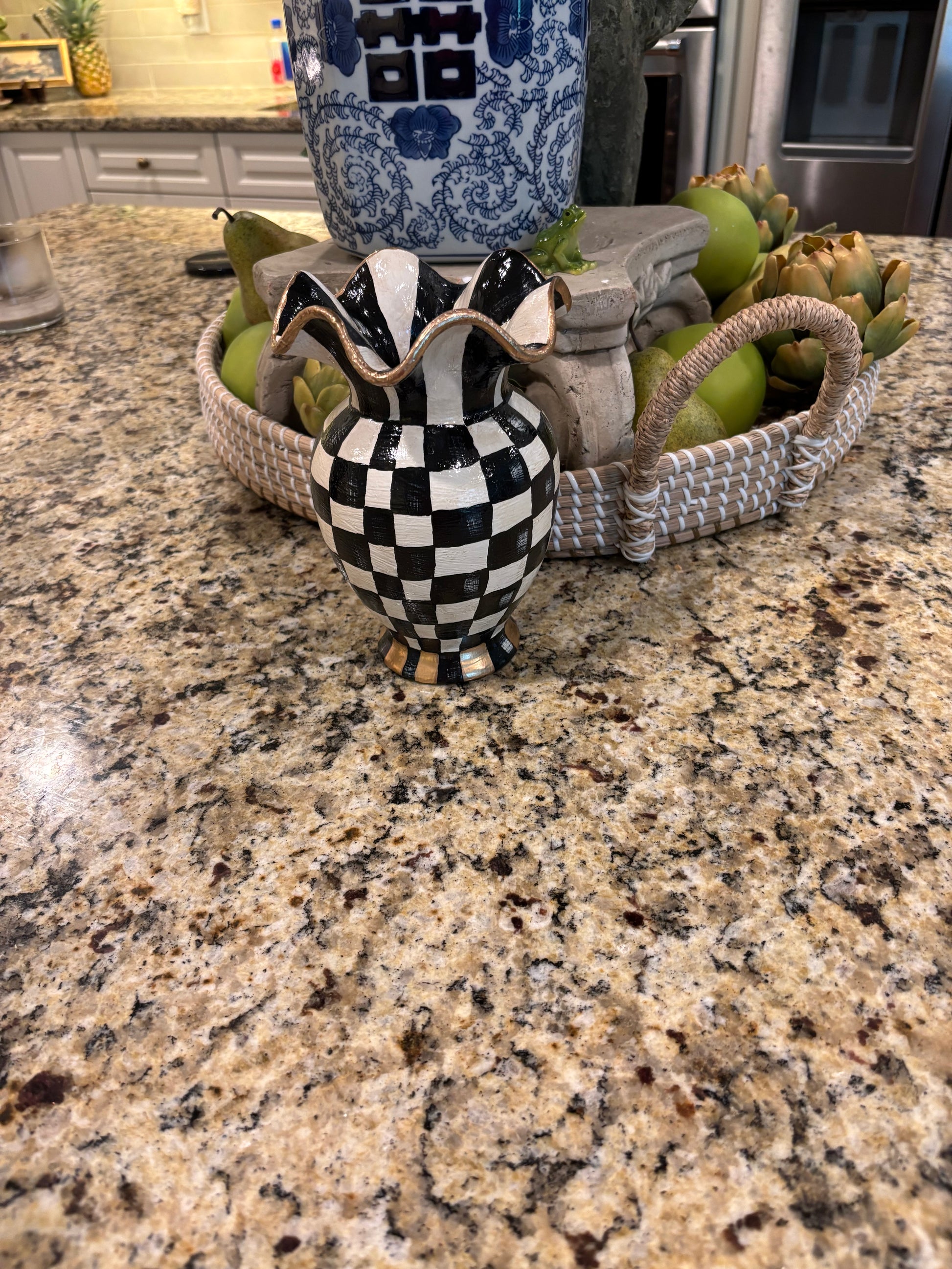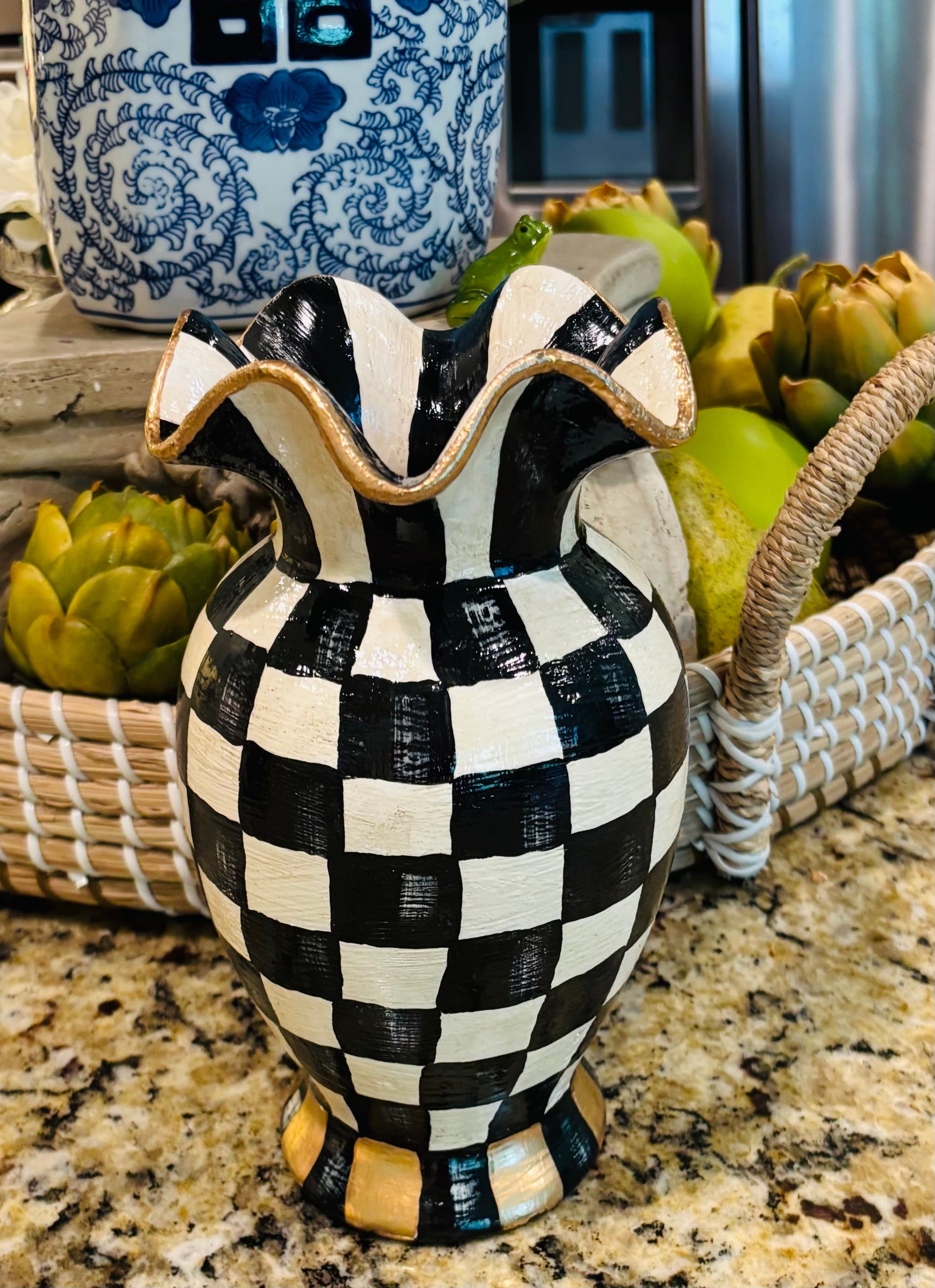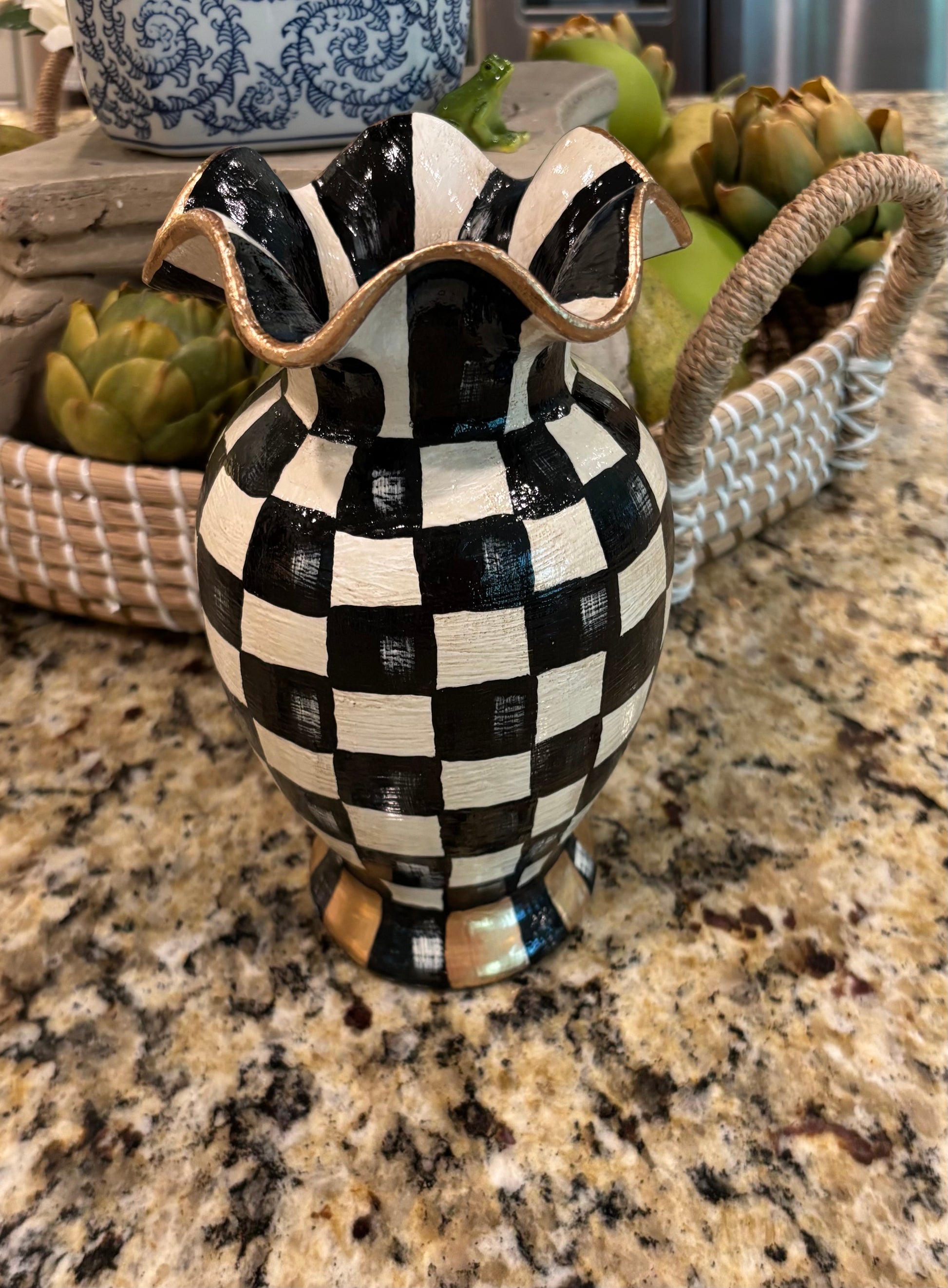 The Ruffled Hand painted Vase was not only painted with tender loving care it took many stages of post painting to receive its uniquely cured finishing! Grab this beautiful one of a kind vase!