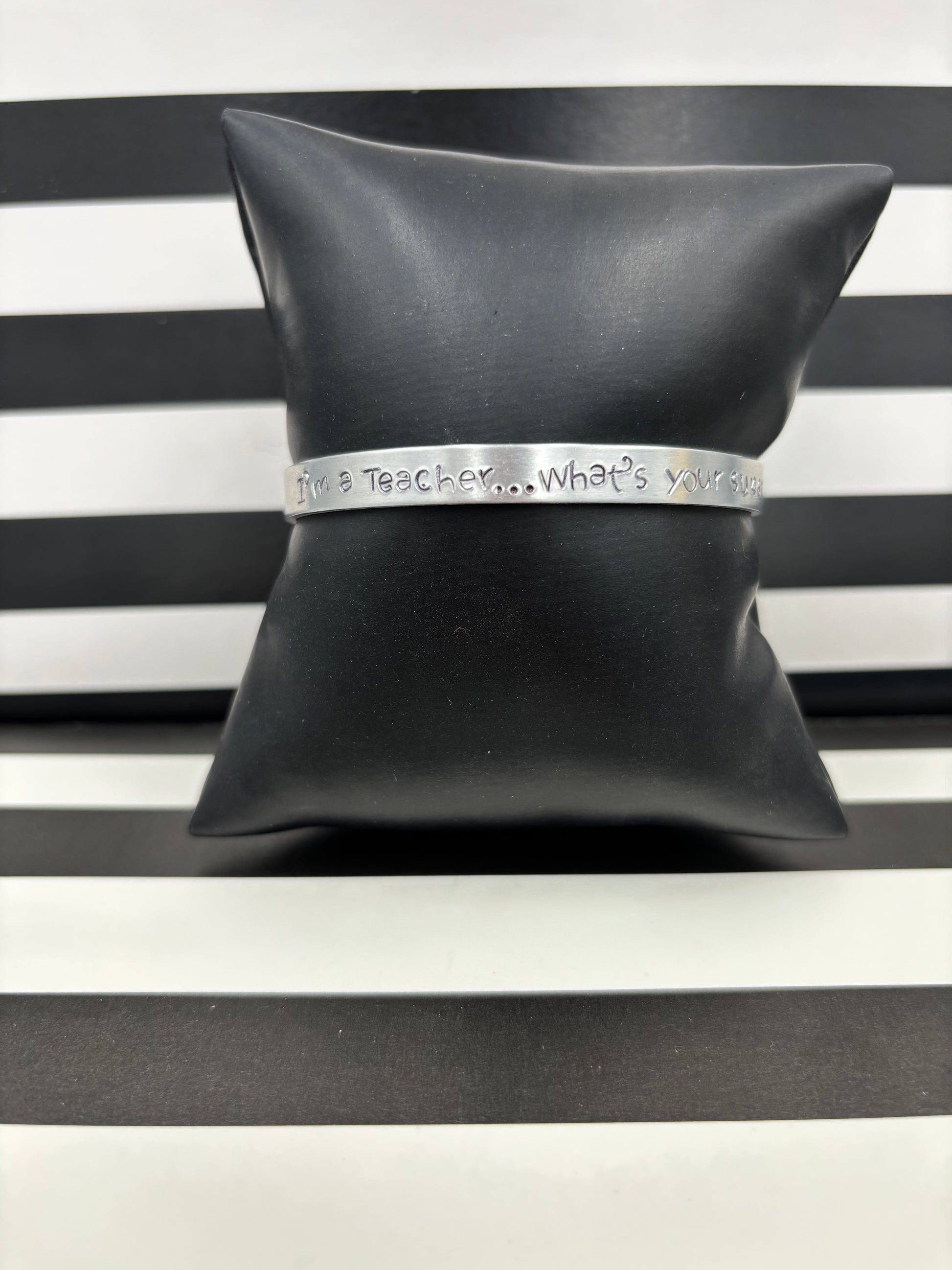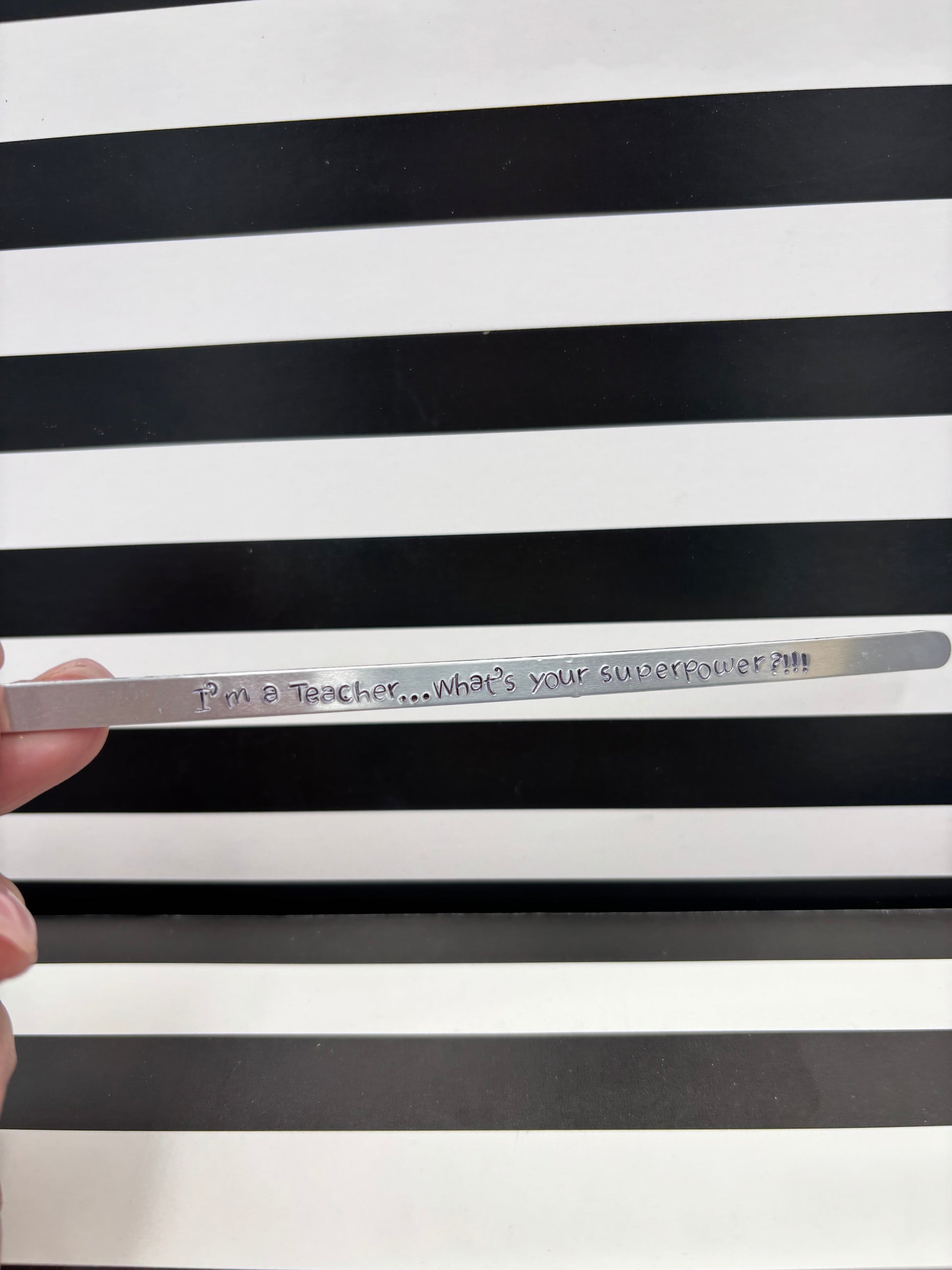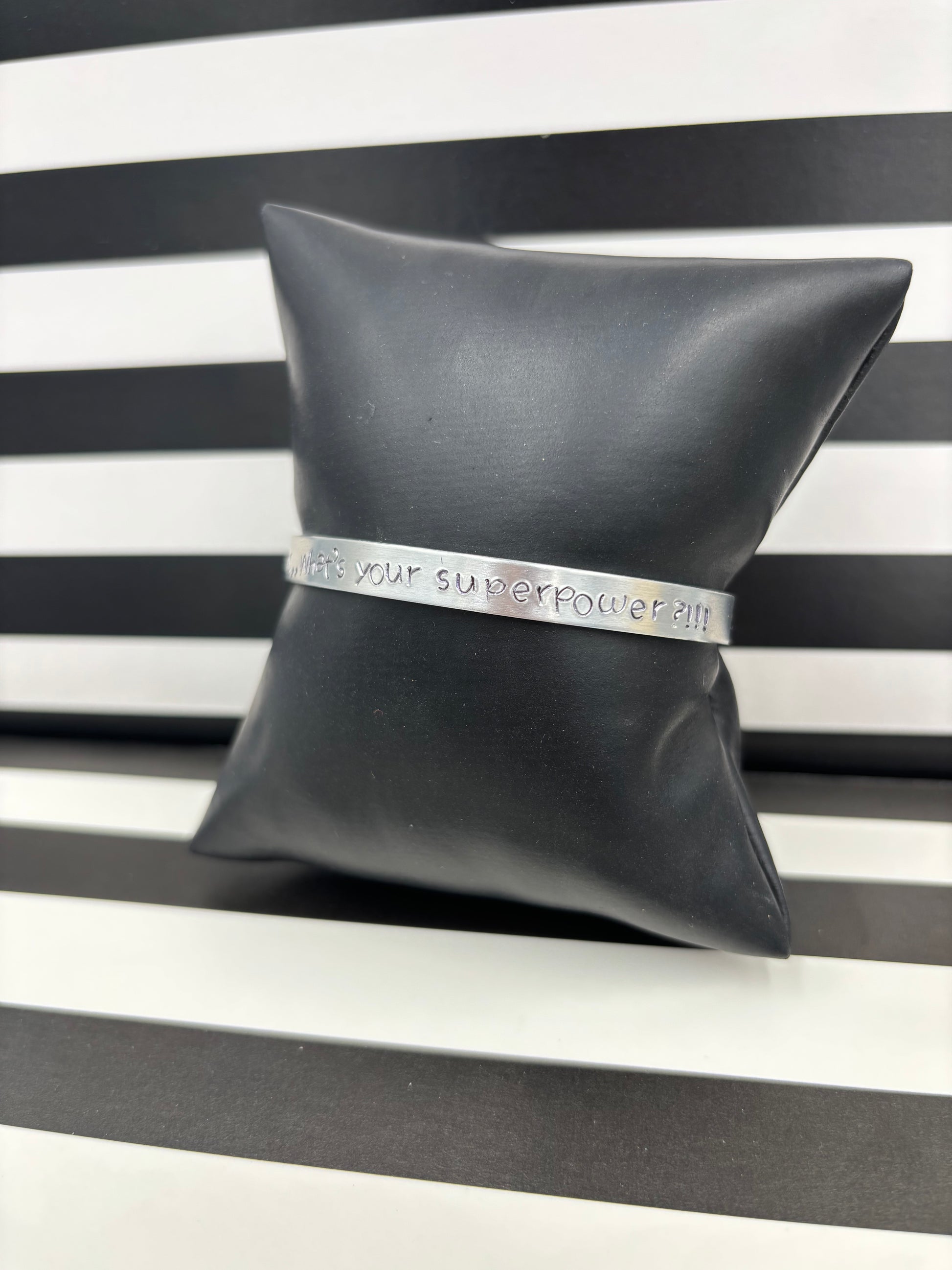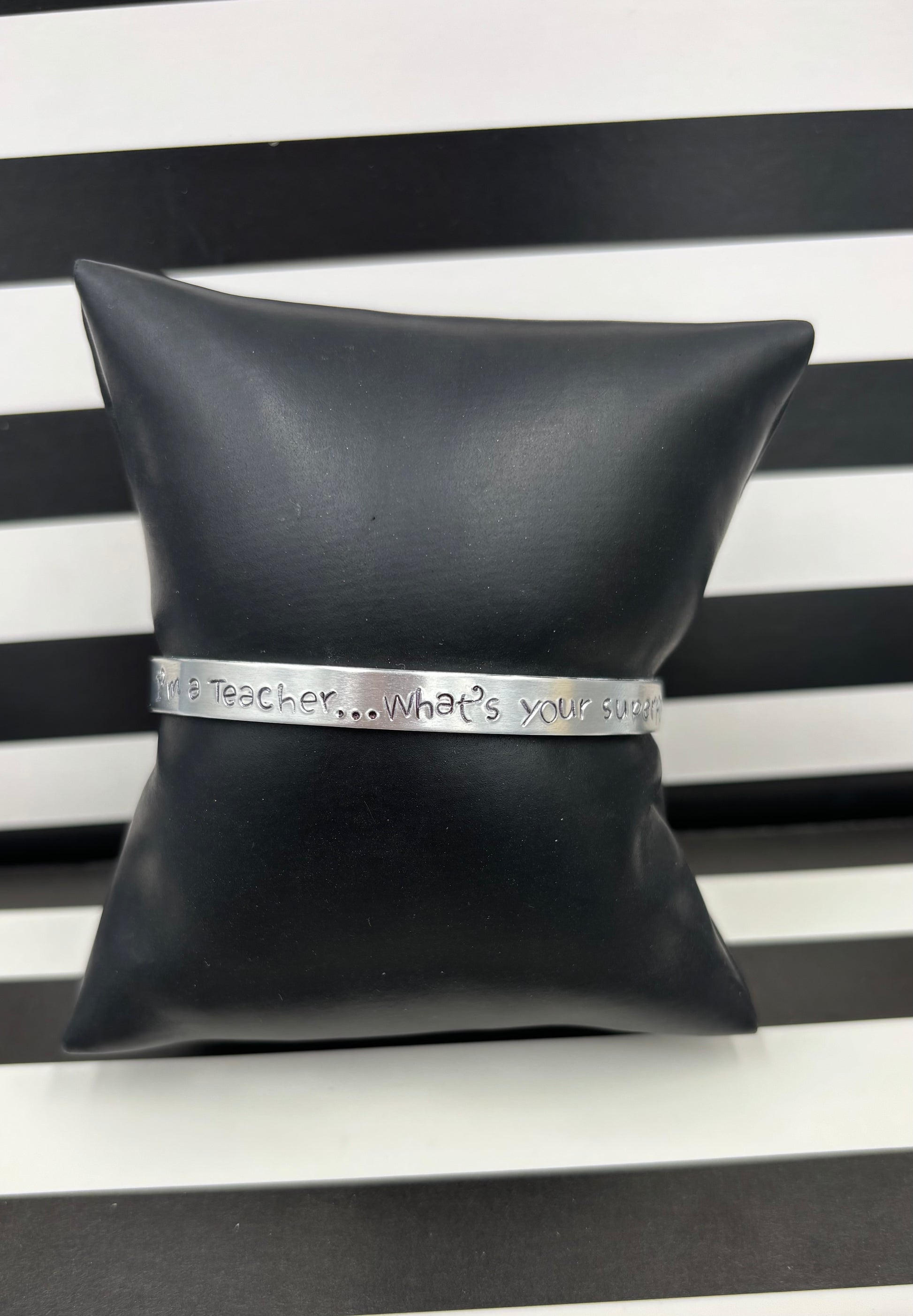 Each letter is hand stamped therefore alignment and depth of each character will vary. All pieces are custom and one of a kind!