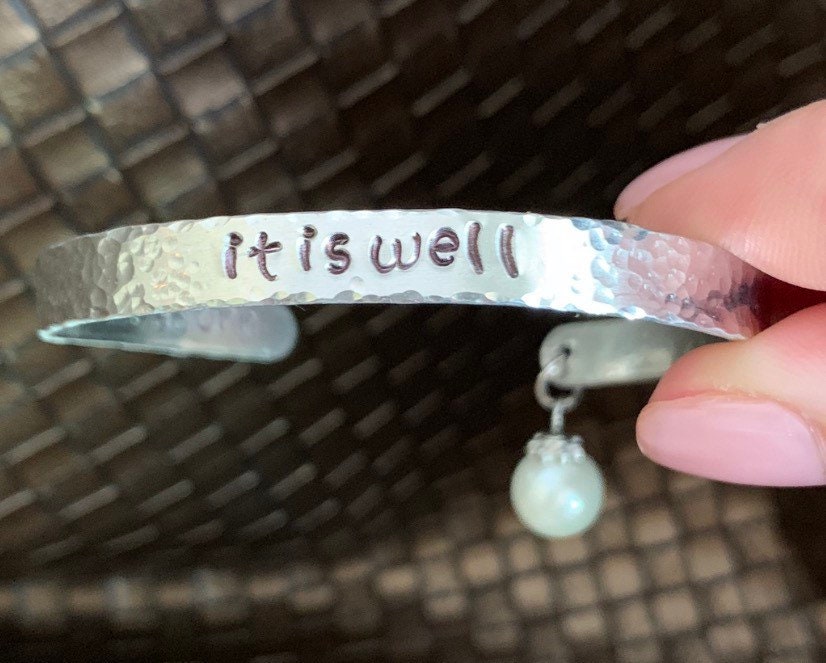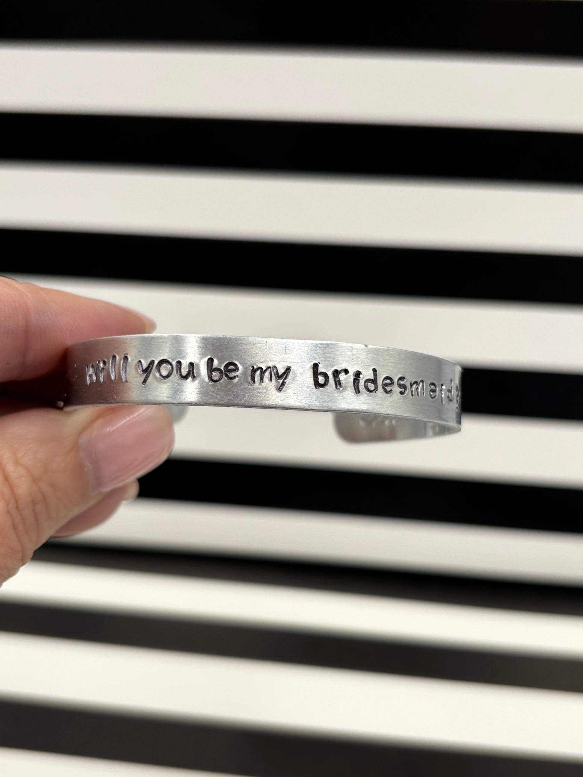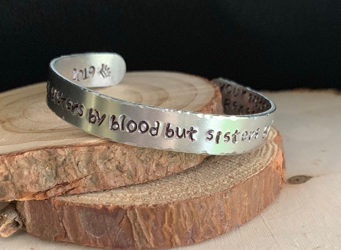 Each letter is hand stamped therefore alignment and depth of each character will vary. All pieces are custom and one of a kind!