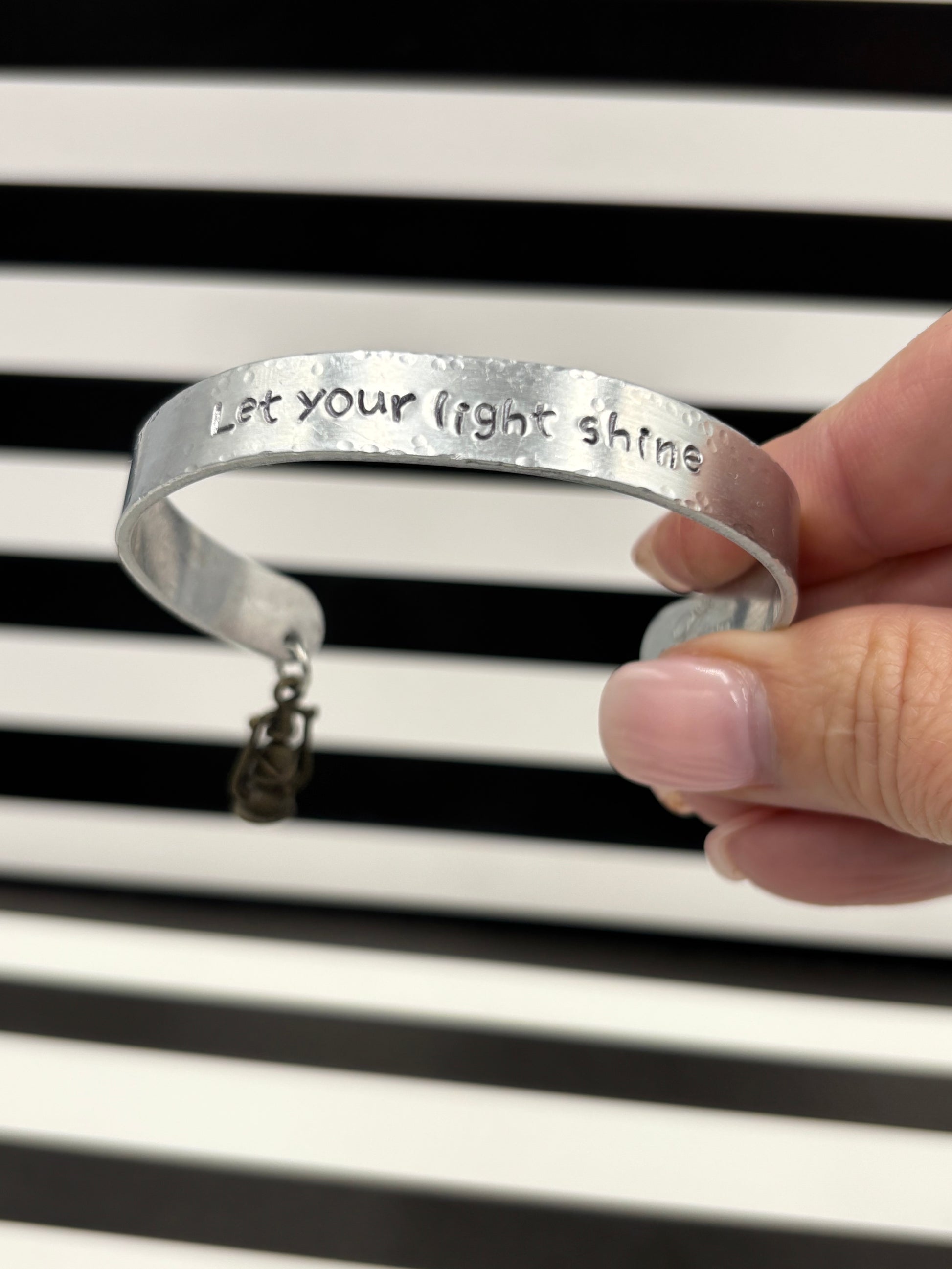Le Madeline Cuff Bracelet features a row of available text (up to approximately 75 characters (including spaces) for you to customize for your own personalized message! This is easily adjustable and is a one size fits all adults although there is a separate link for children’s sized cuffs.