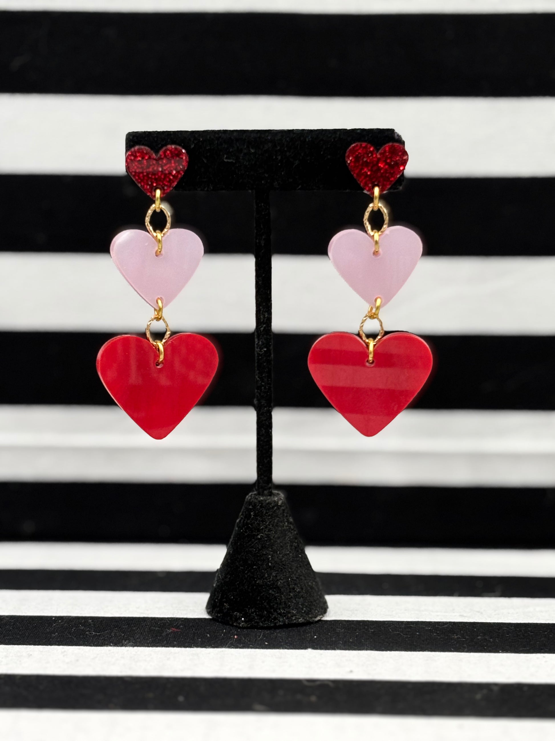 The Triple Heart Earrings are made by hand and super light weight. These are darling for Valentine’s Day but also are “Adorn”-able all year around!