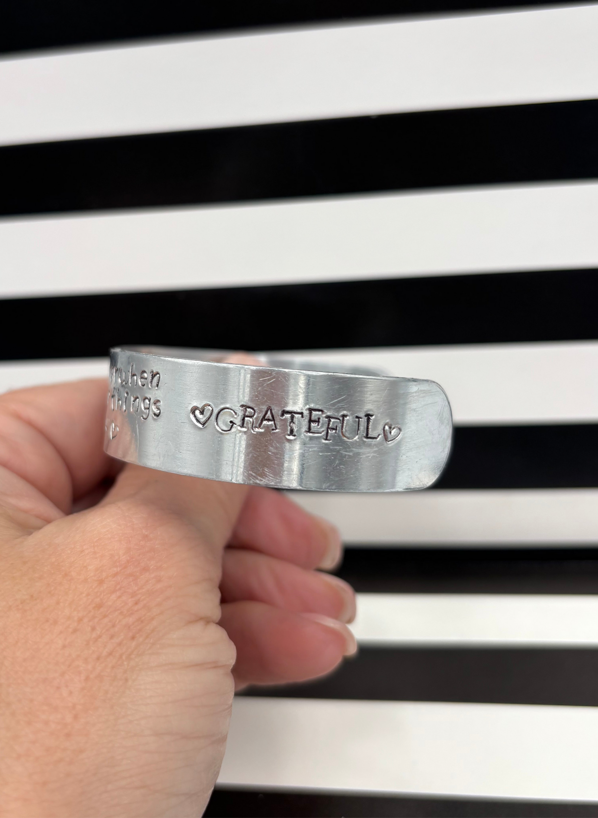 The Andorra Wide Cuff Bracelet features the option of up to TWO rows of available text (up to approximately 75 characters per row (including spaces) for you to customize for your own personalized message! This is easily adjustable and is a one size fits all adults although there is a separate link for children’s sized cuffs.