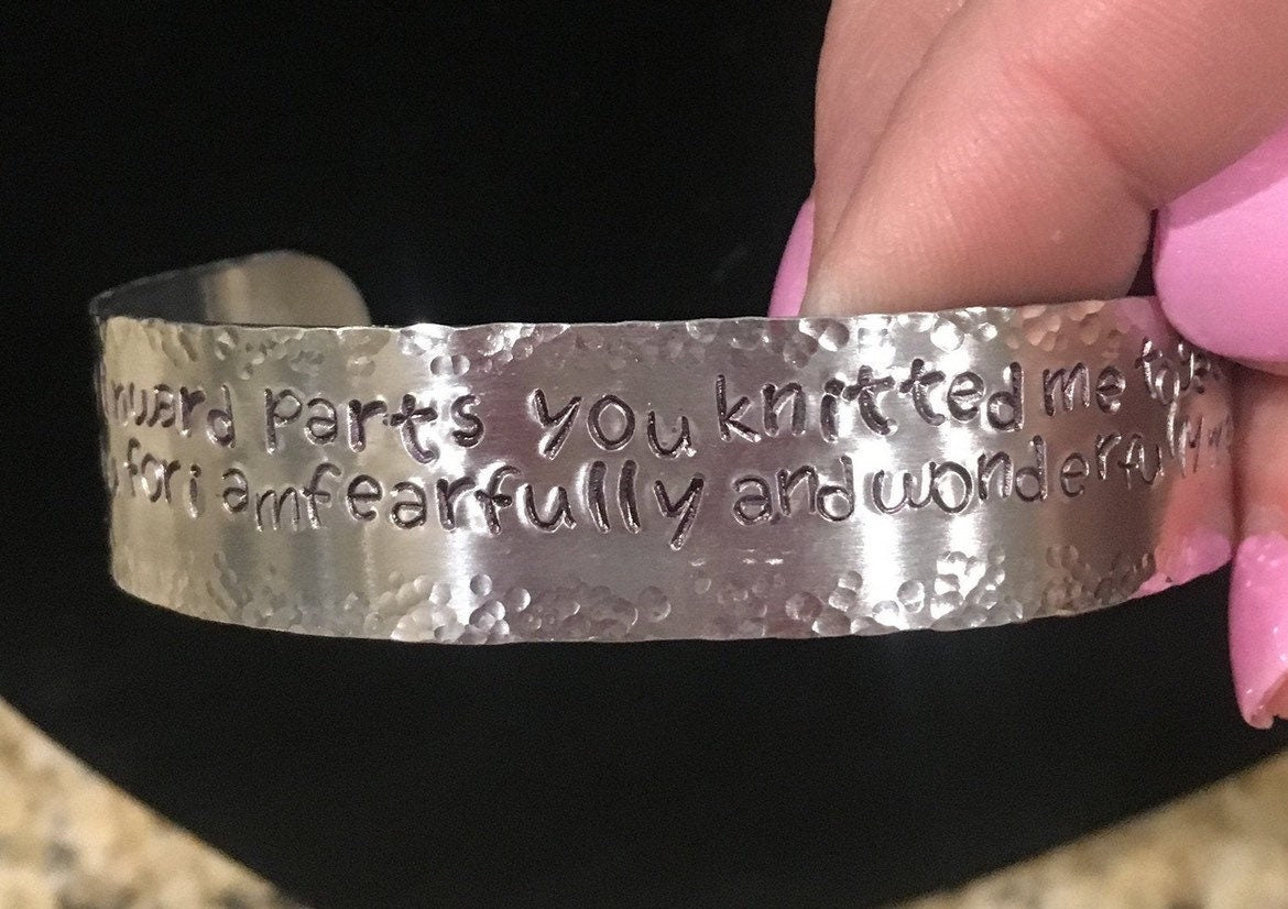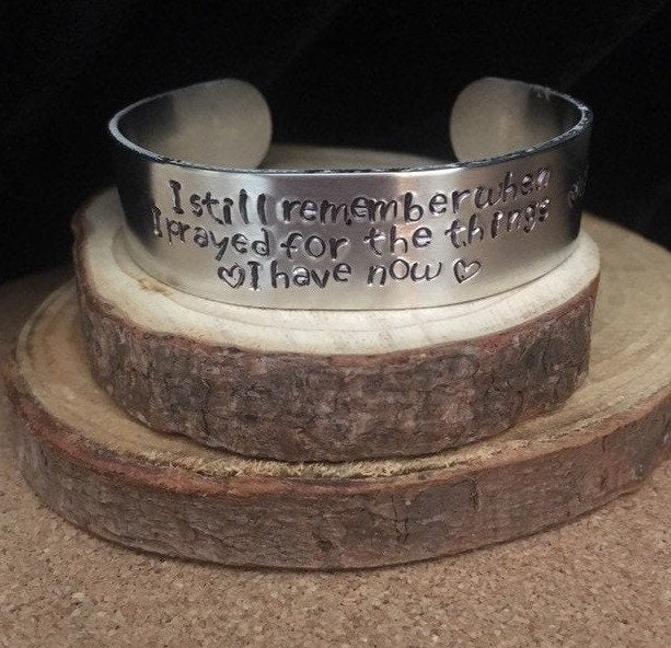 Each letter is hand stamped therefore alignment and depth of each character will vary. All pieces are custom and one of a kind!