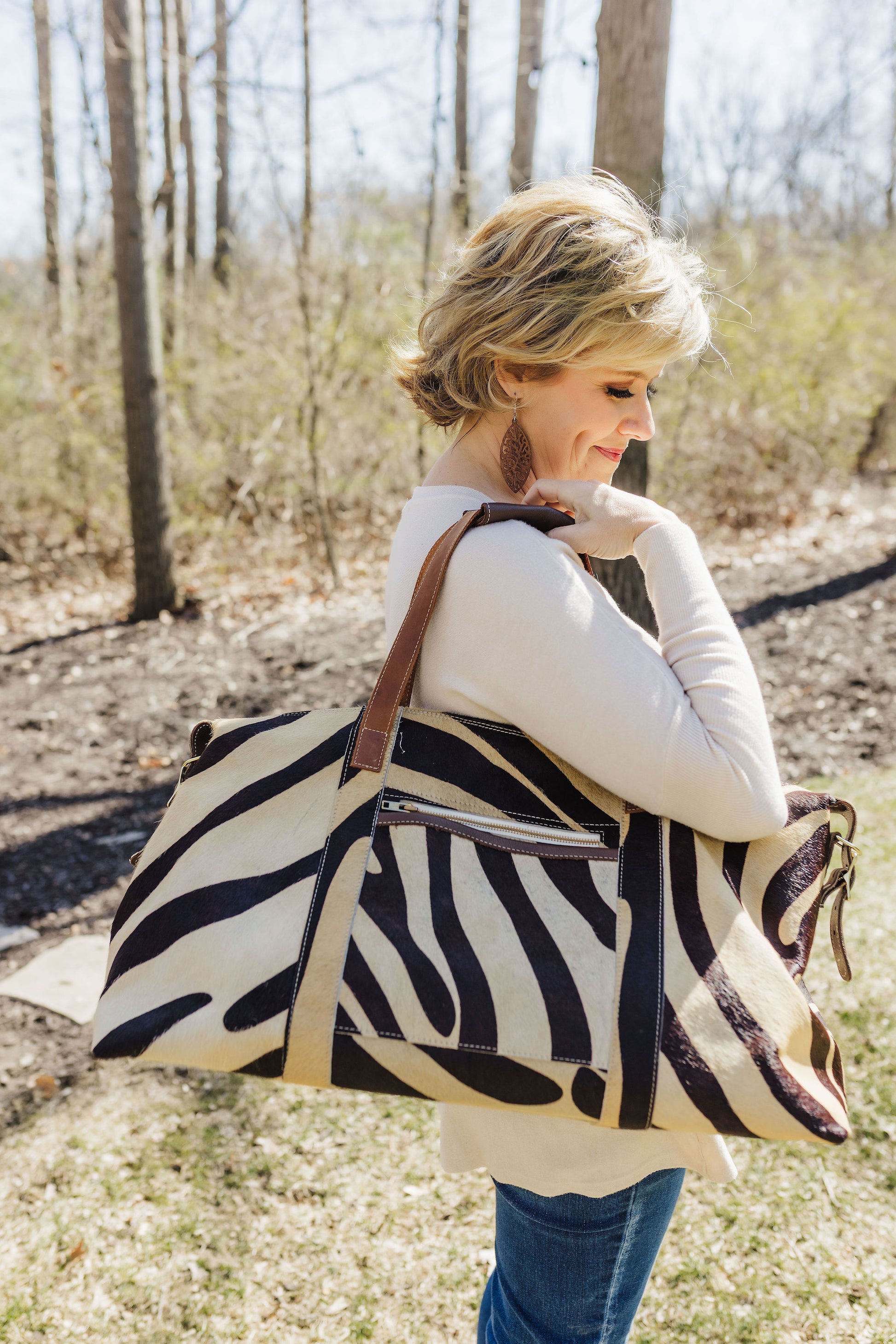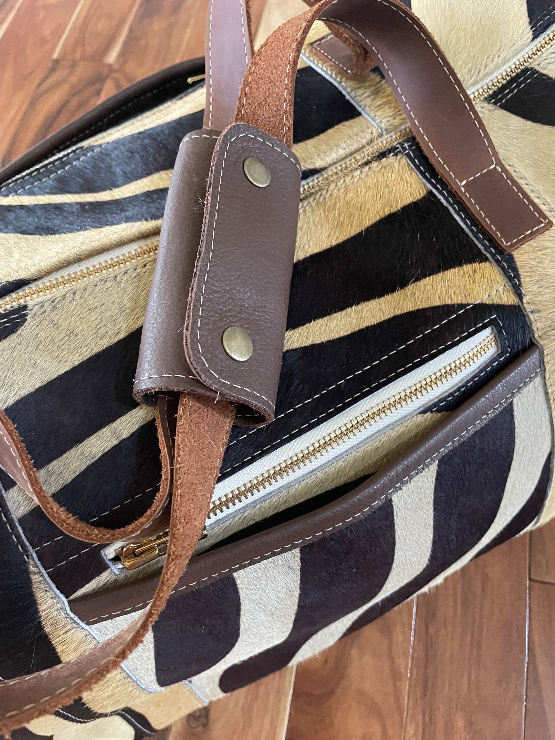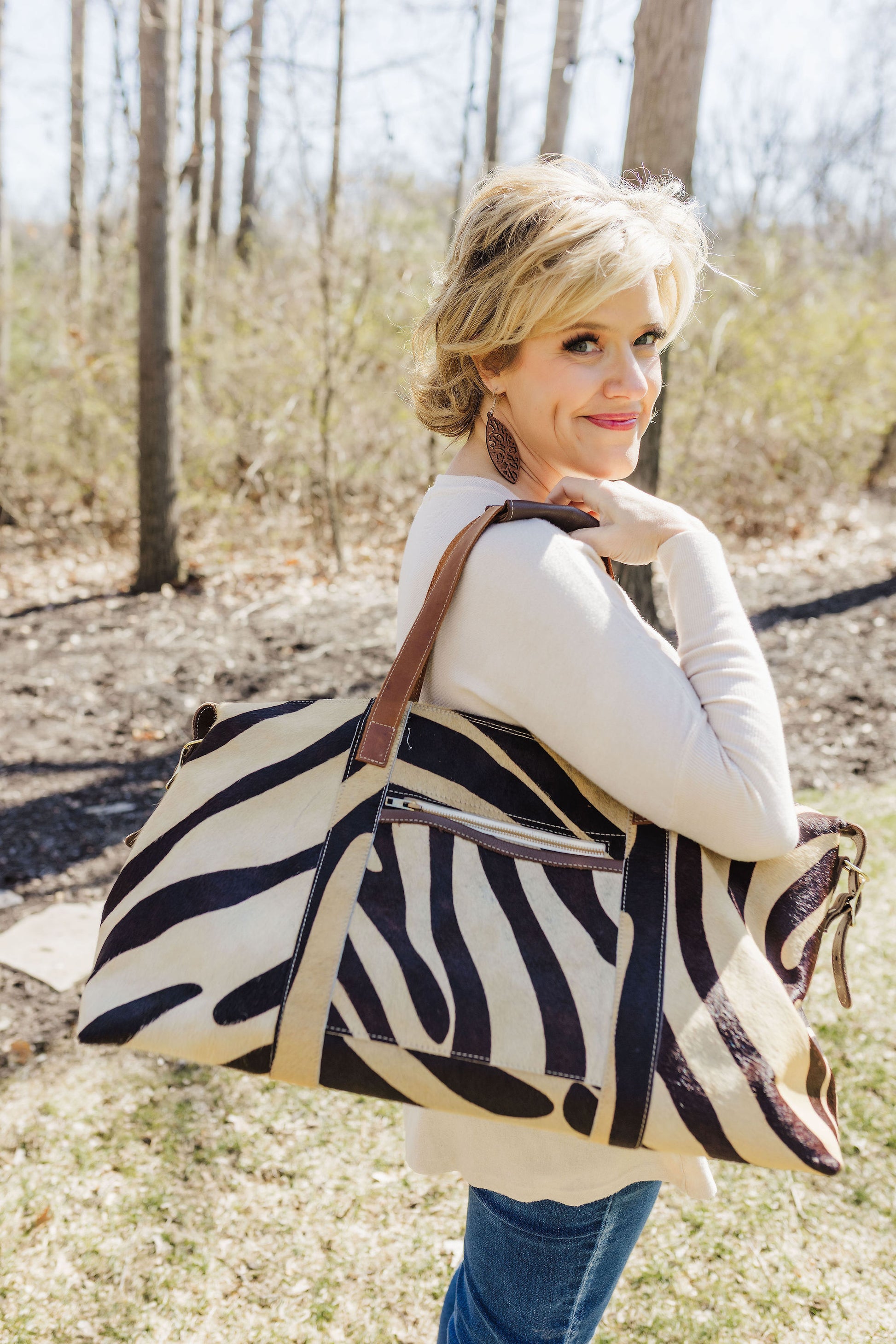 Wild One Tote smells glorious and is a show stopping statement bag! It is handmade in the USA and is made of genuine materials with a gorgeous turquoise interior lining. Detachable crossbody strap included.